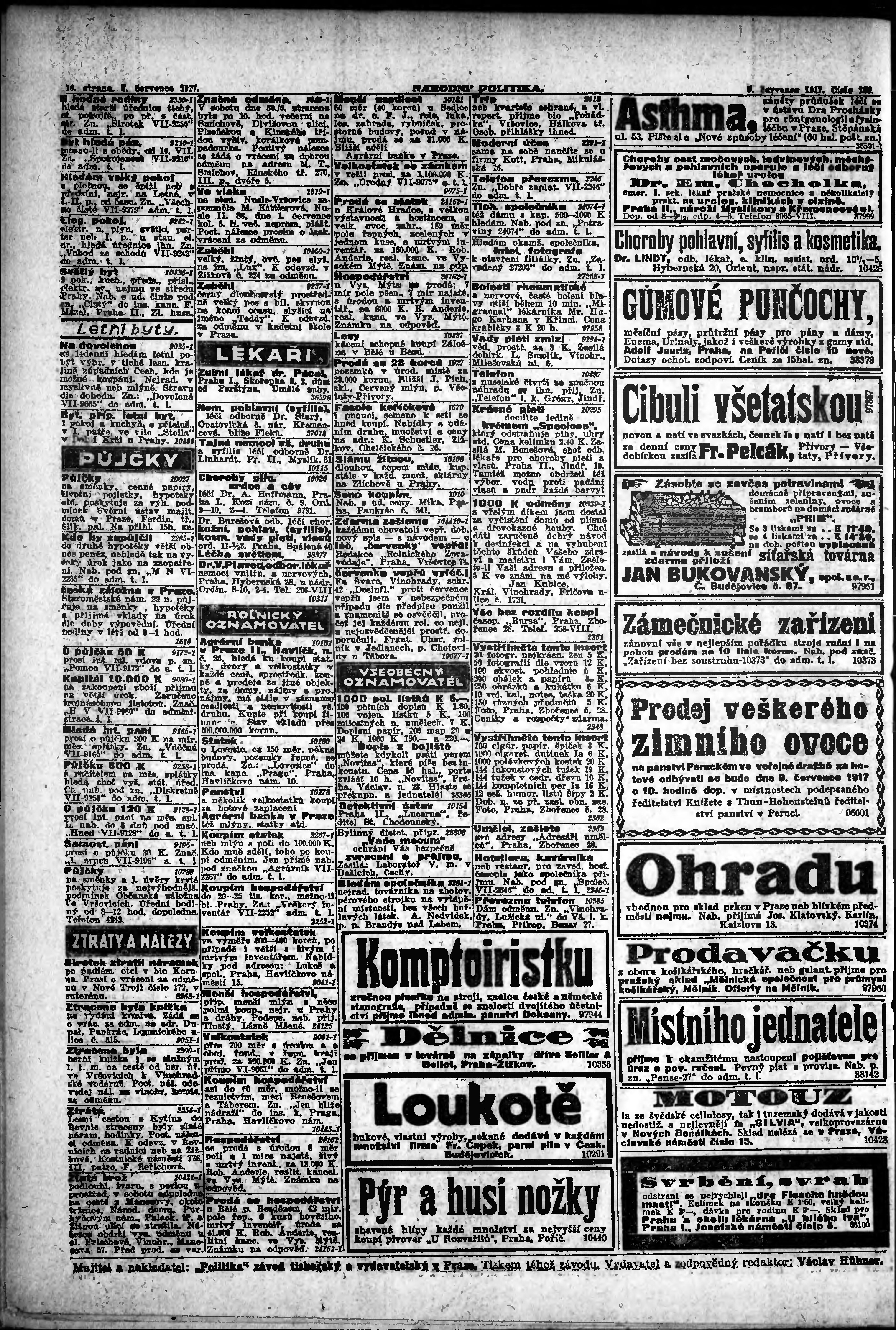 * Datum vydání výtisku: 3.7.1917 Číslo výtisku: 180 Poznámky k výtisku: ranní vydání;