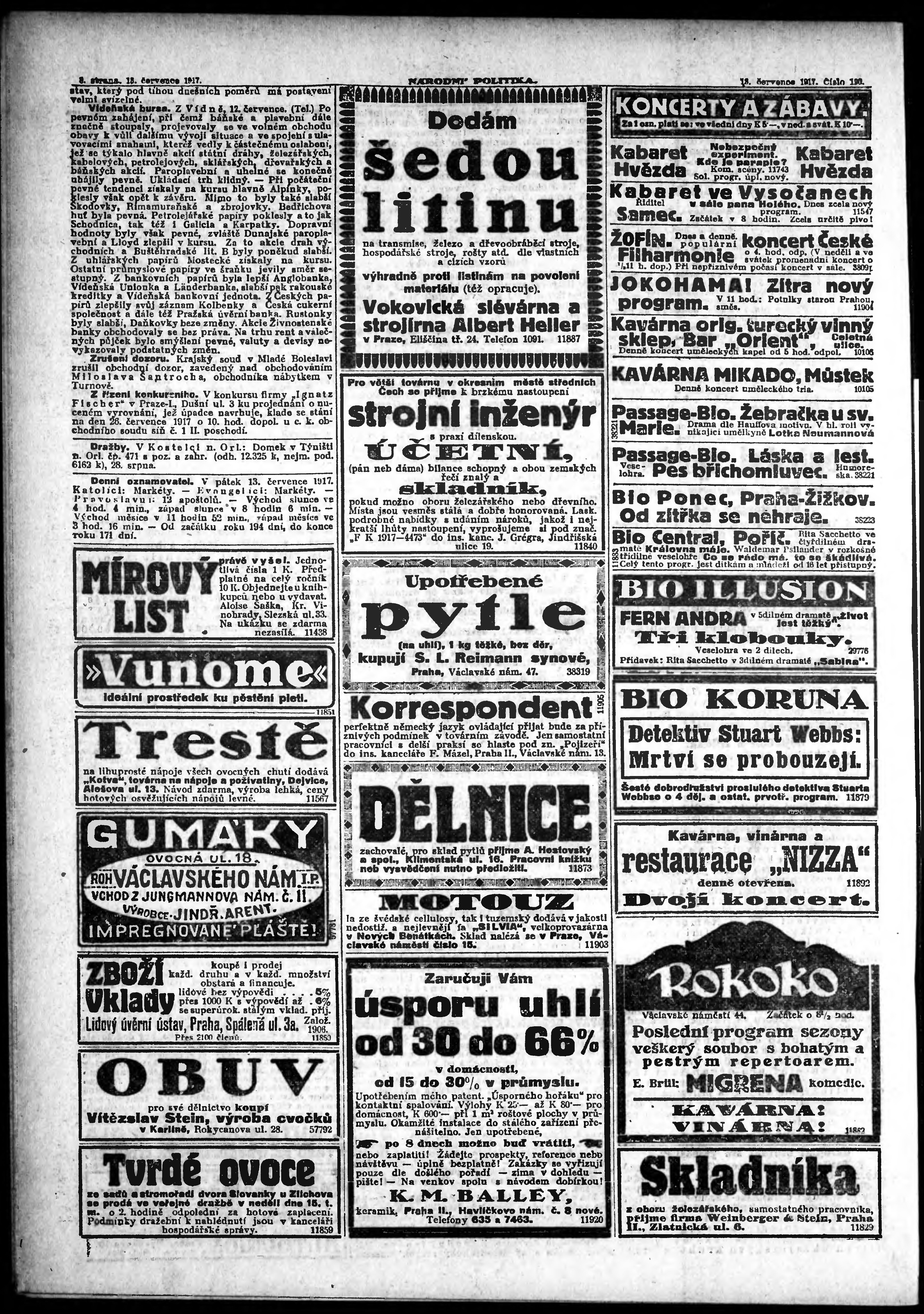 * Datum vydání výtisku: 13.7.1917 Číslo výtisku: 190 Poznámky k výtisku: ranní vydání;