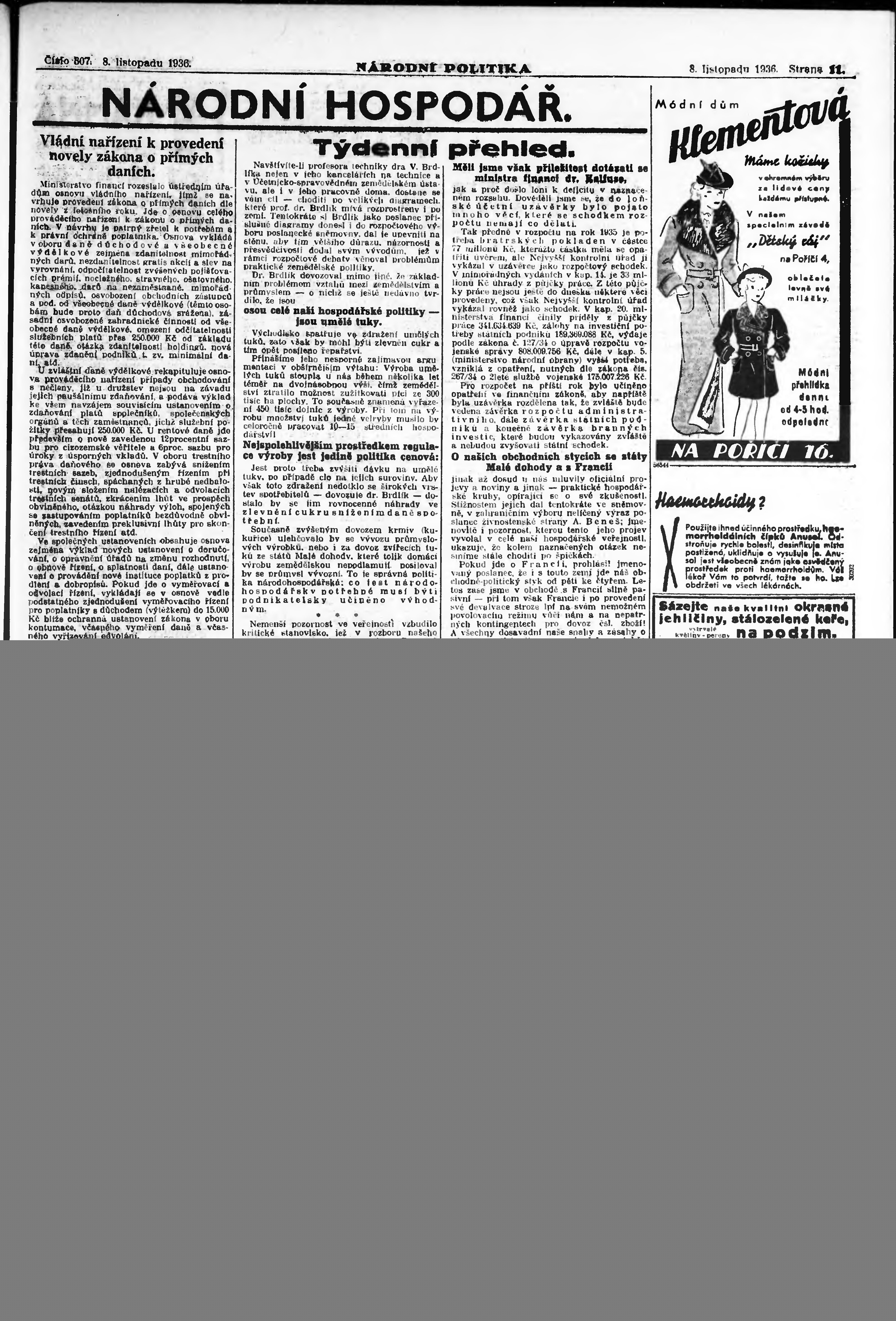 * Datum vydání výtisku: 8.11.1936 Číslo výtisku: 307 Poznámky k výtisku: ranní vydání;