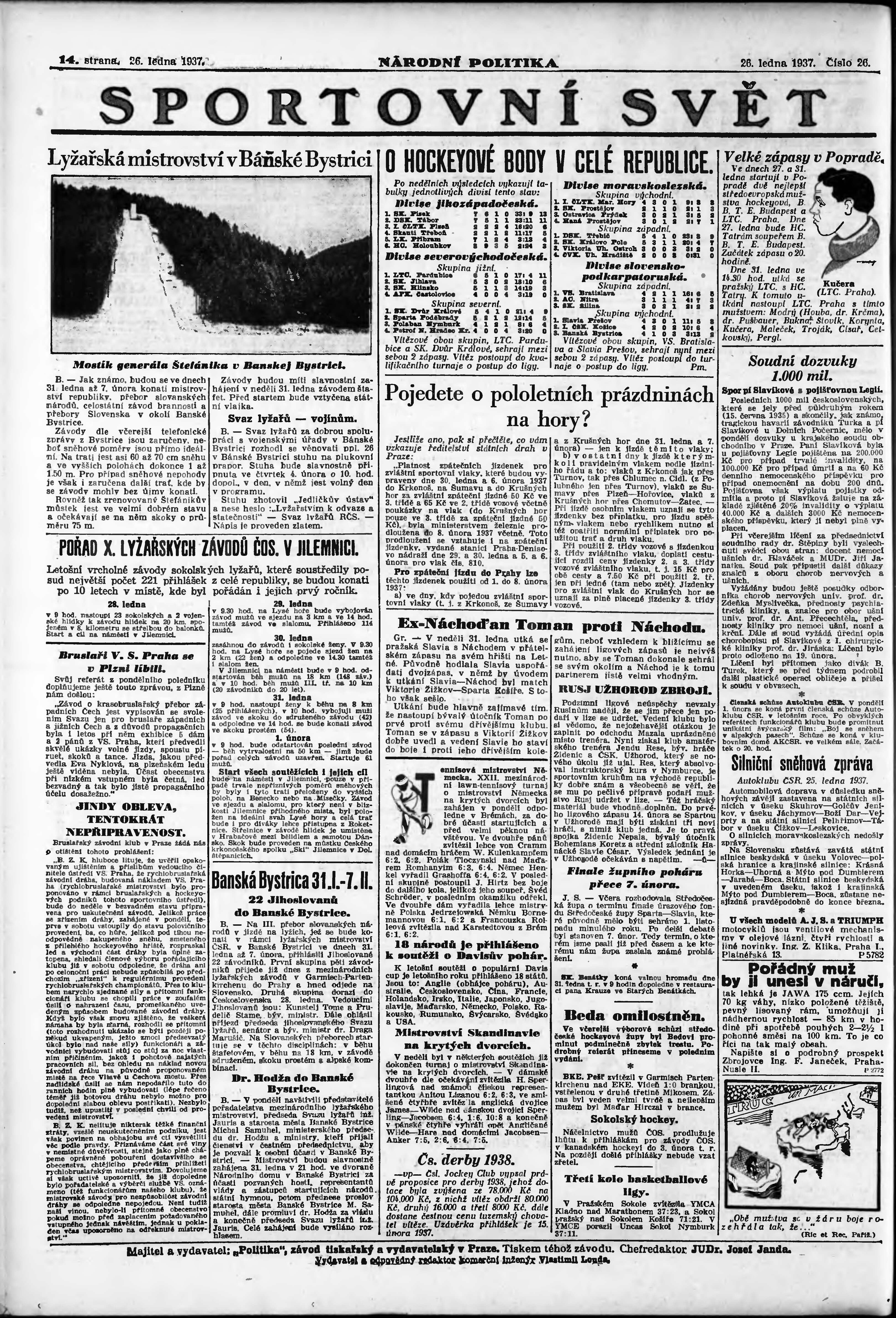 * Datum vydání výtisku: 26.1.1937 Číslo výtisku: 26 Poznámky k výtisku: ranní vydání; vydání pro Prahu;