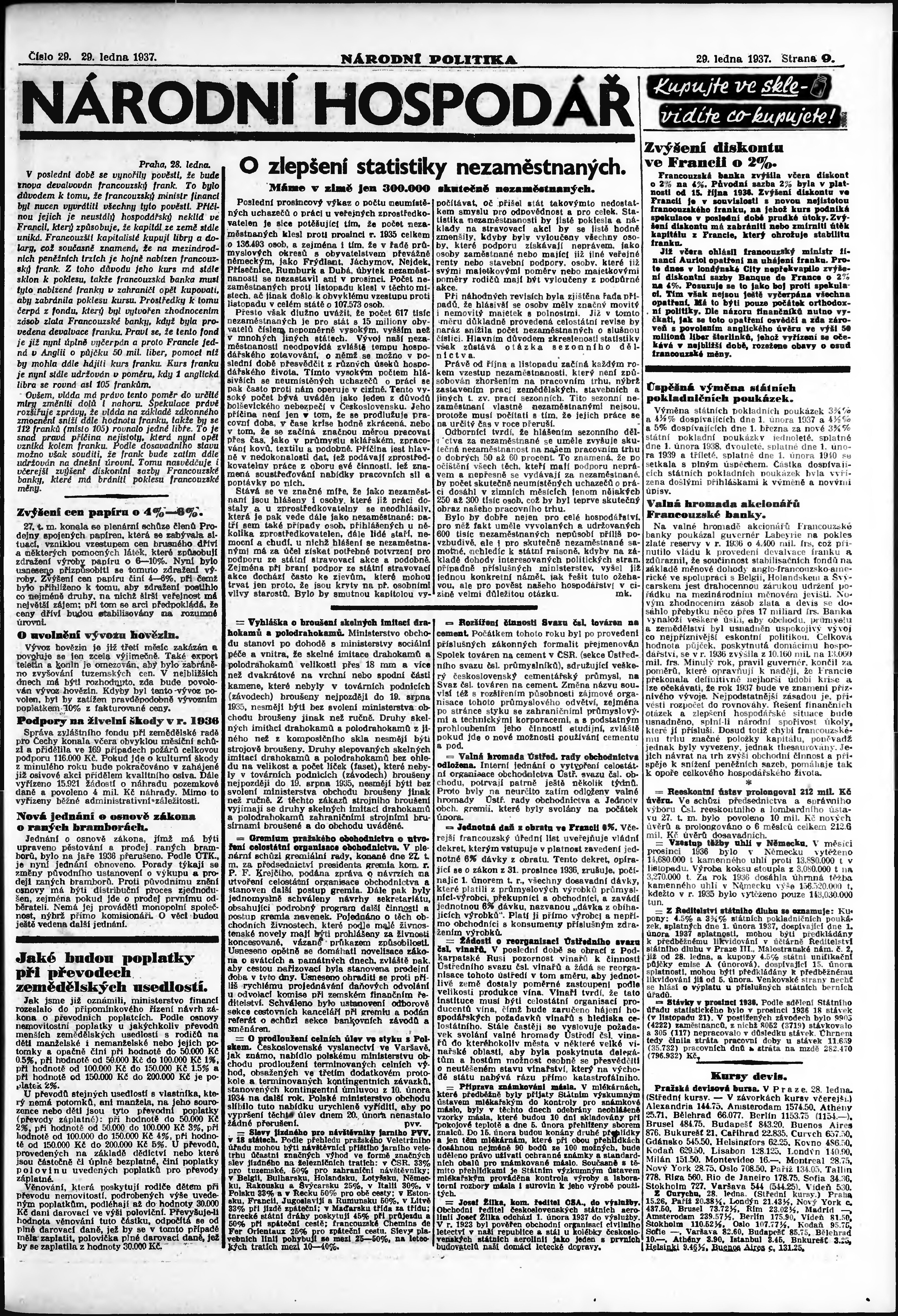 * Datum vydání výtisku: 29.1.1937 Číslo výtisku: 29 Poznámky k výtisku: ranní vydání; vydání pro Prahu;