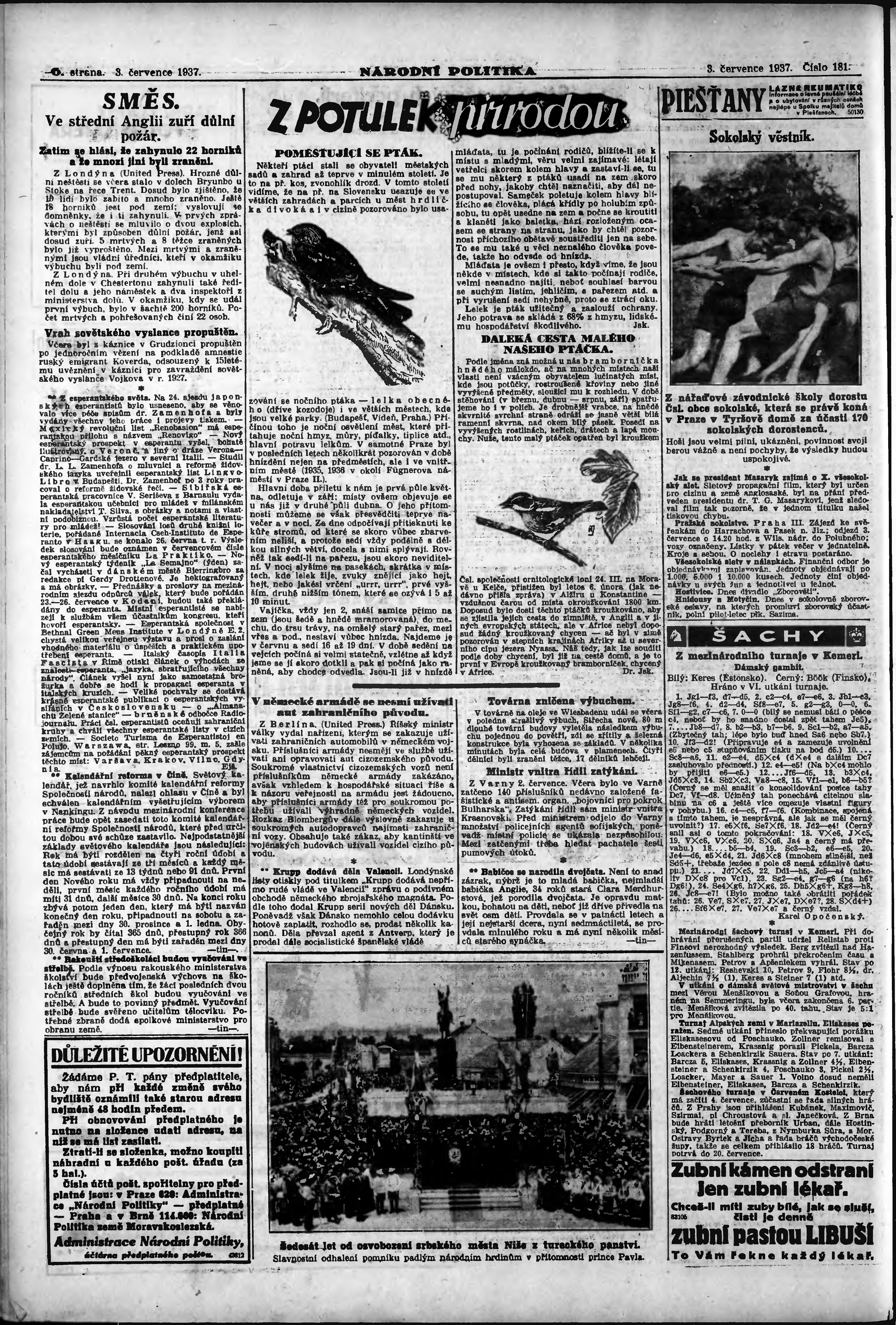 * Datum vydání výtisku: 3.7.1937 Číslo výtisku: 181 Poznámky k výtisku: ranní vydání; vydání pro Prahu;