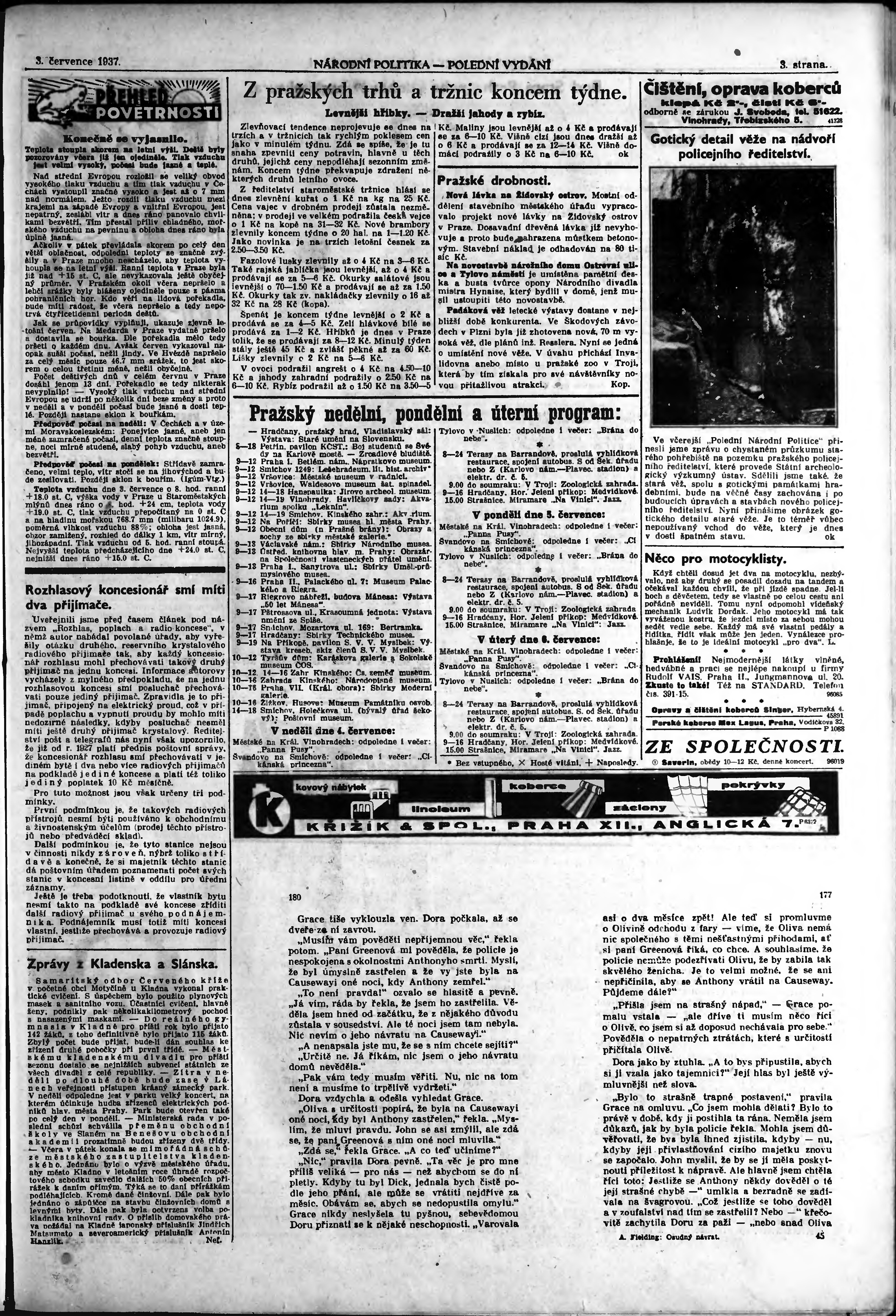 * Datum vydání výtisku: 3.7.1937 Číslo výtisku: 181 Poznámky k výtisku: polední vydání;