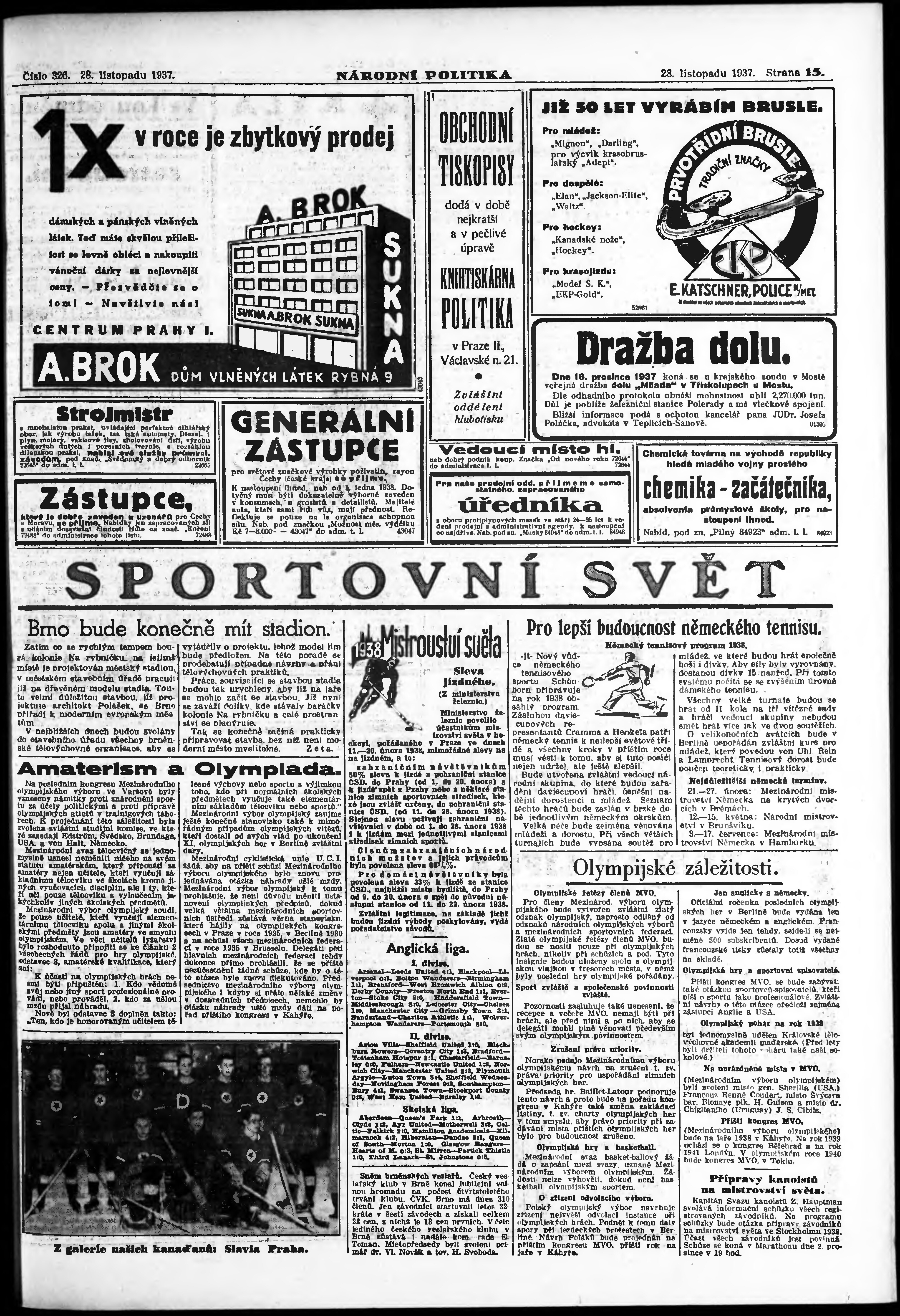* Datum vydání výtisku: 28.11.1937 Číslo výtisku: 326 Poznámky k výtisku: ranní vydání;