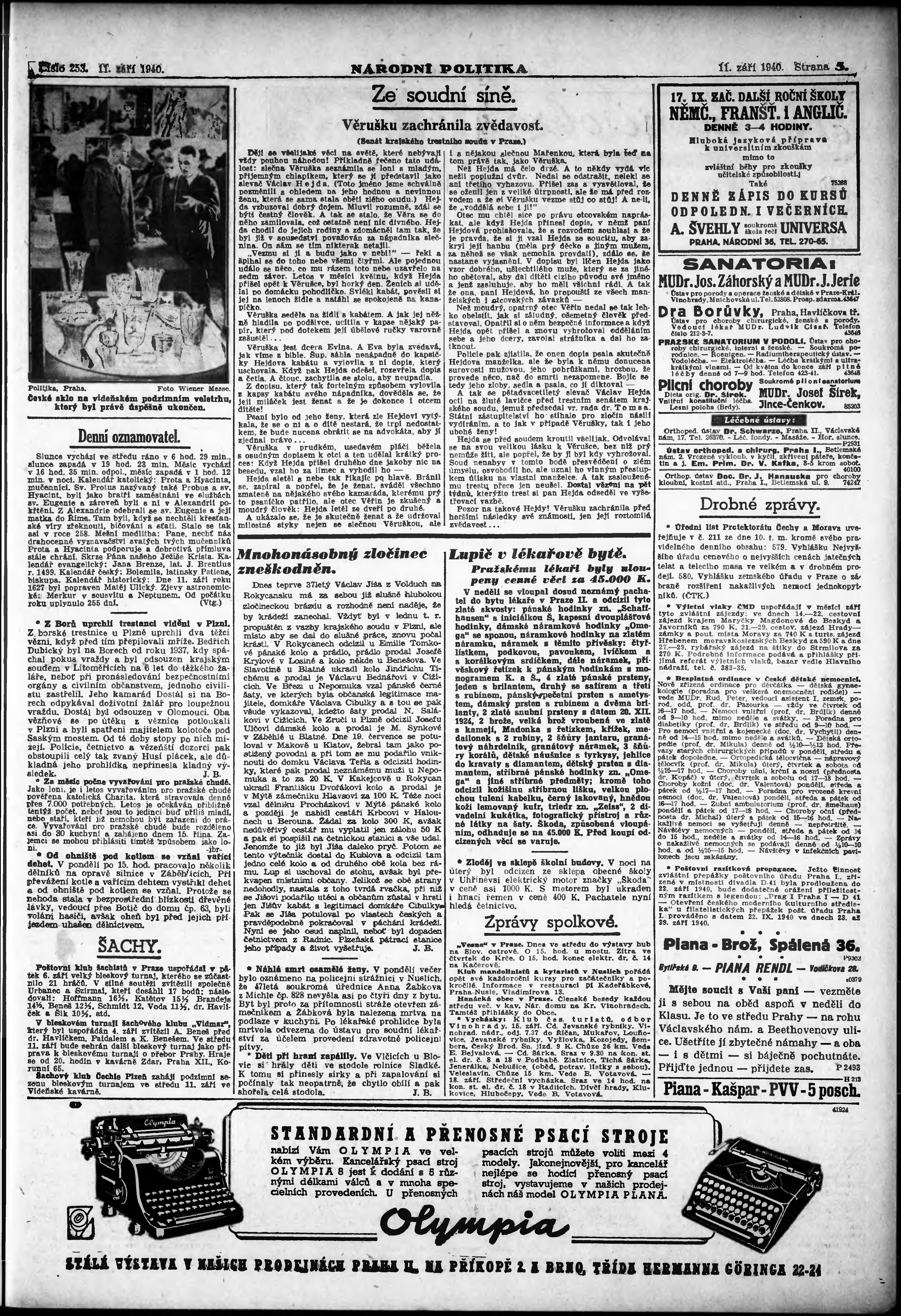 * Datum vydání výtisku: 11.9.1940 Číslo výtisku: 253 Poznámky k výtisku: ranní vydání; vydání pro Prahu;