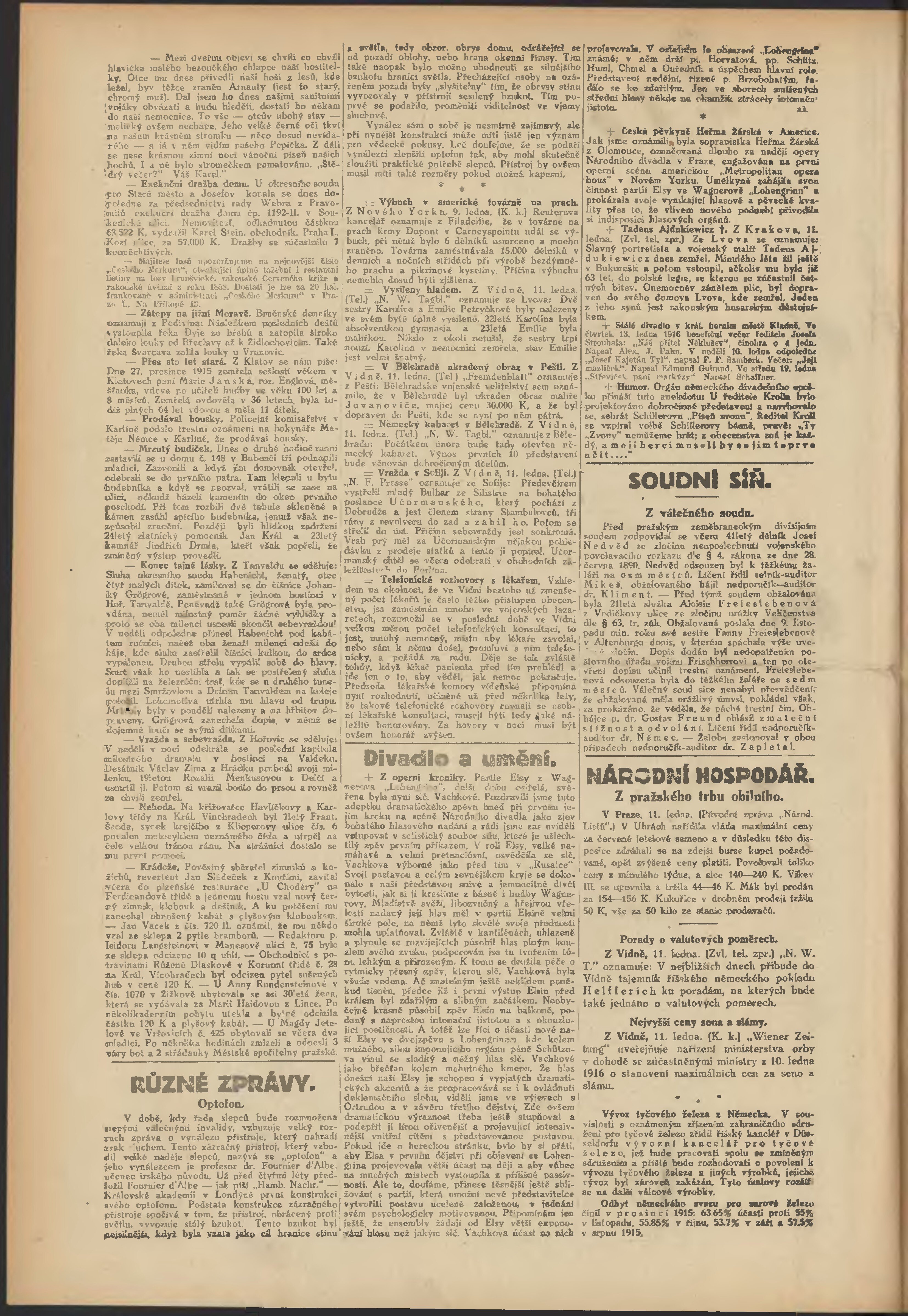 * Datum vydání výtisku: 11.1.1916 Číslo výtisku: 11 Poznámky k výtisku: večerní vydání;