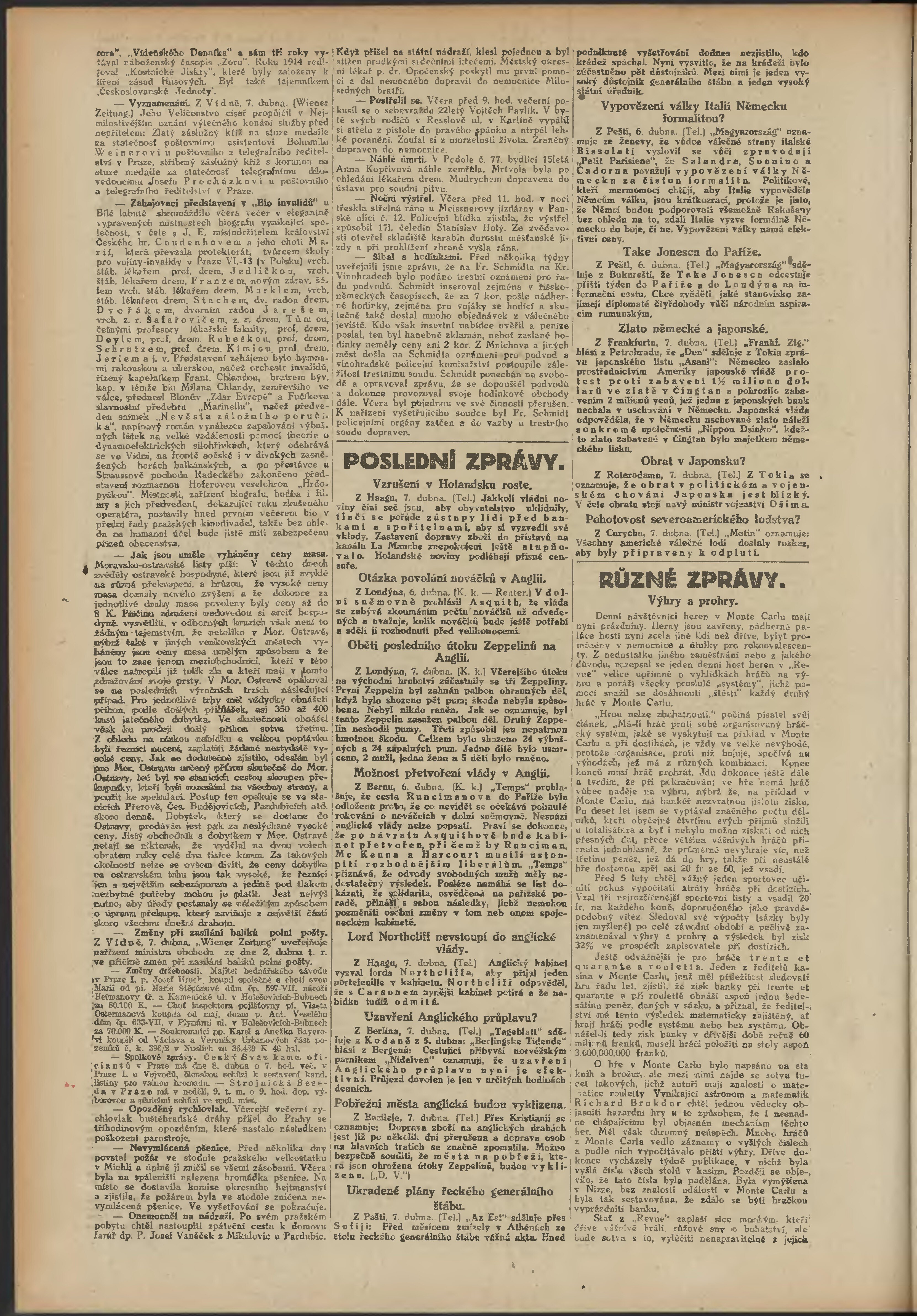 * Datum vydání výtisku: 7.4.1916 Číslo výtisku: 97 Poznámky k výtisku: večerní vydání;