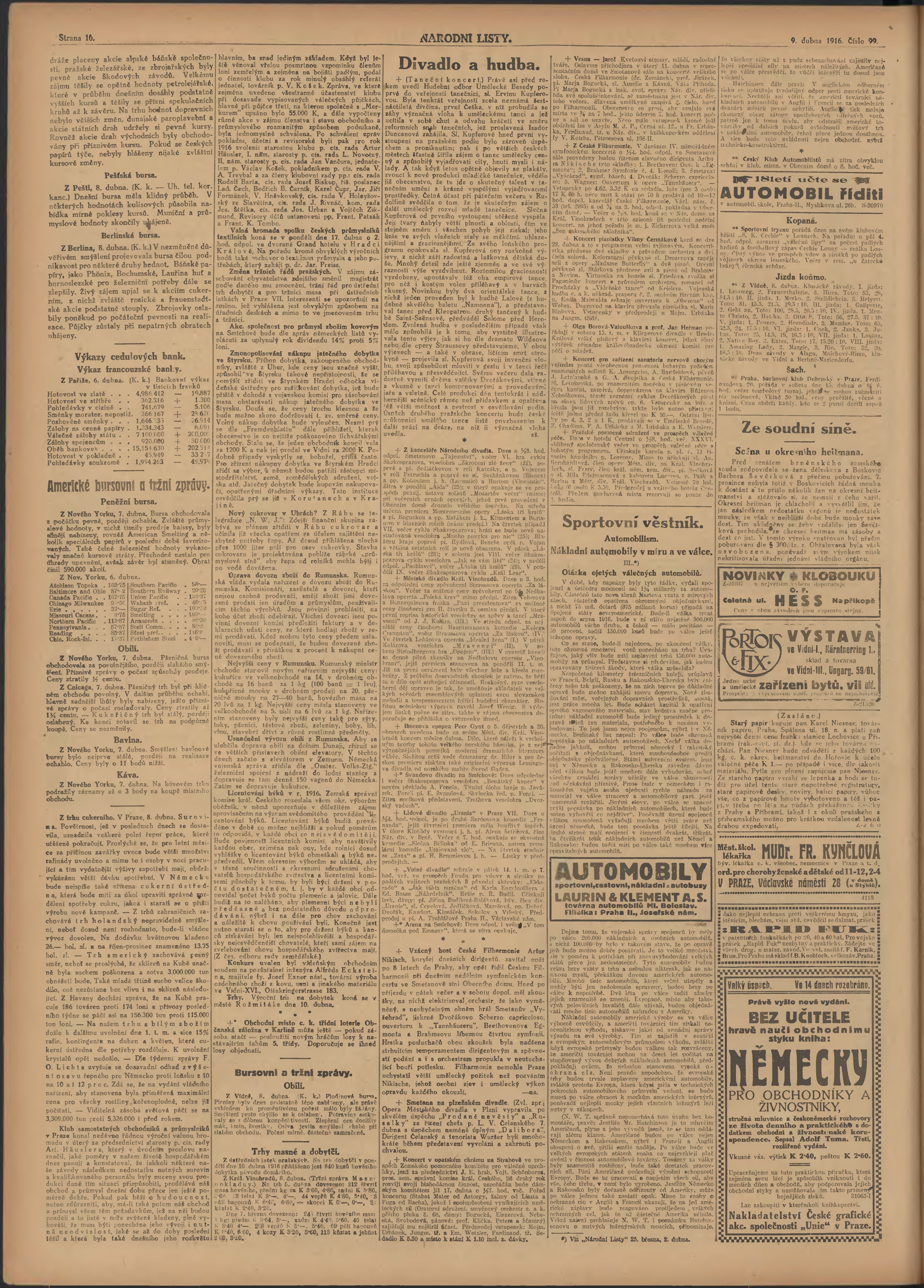 * Datum vydání výtisku: 9.4.1916 Číslo výtisku: 99 Poznámky k výtisku: ranní vydání; 2. vydání pro Prahu;