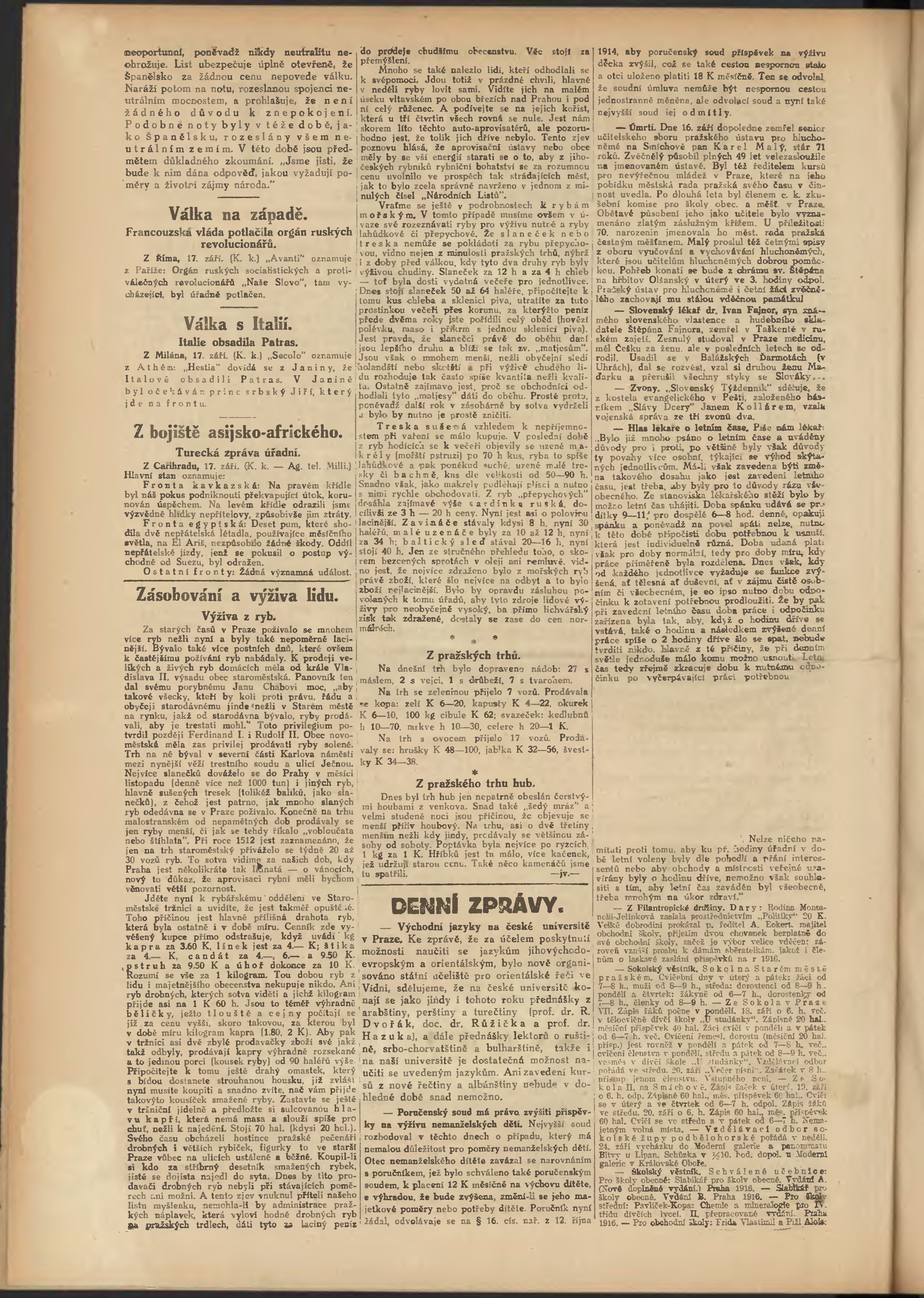 * Datum vydání výtisku: 18.9.1916 Číslo výtisku: 259 Poznámky k výtisku: večerní vydání;