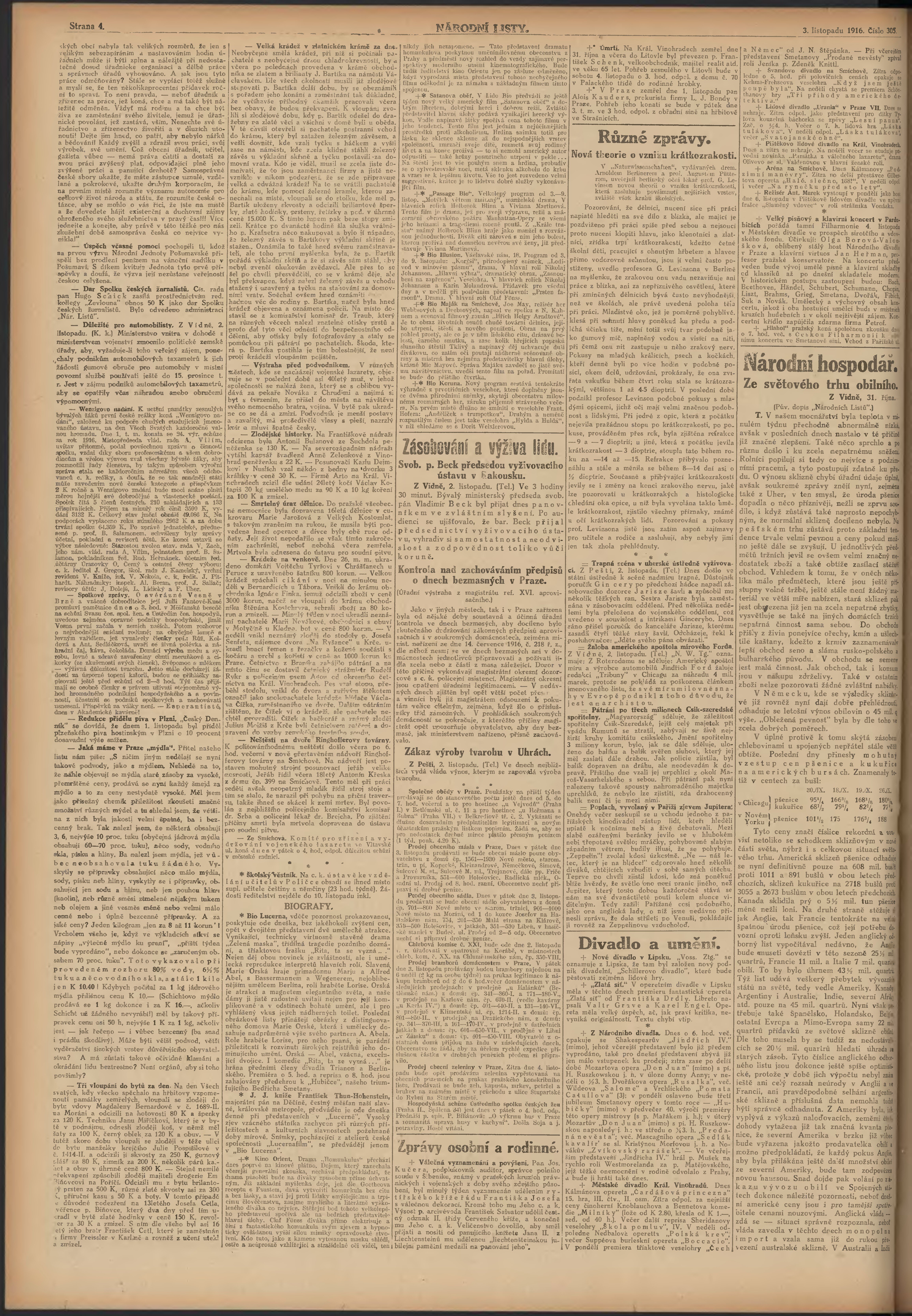 * Datum vydání výtisku: 3.11.1916 Číslo výtisku: 305 Poznámky k výtisku: ranní vydání; 1. vydání;