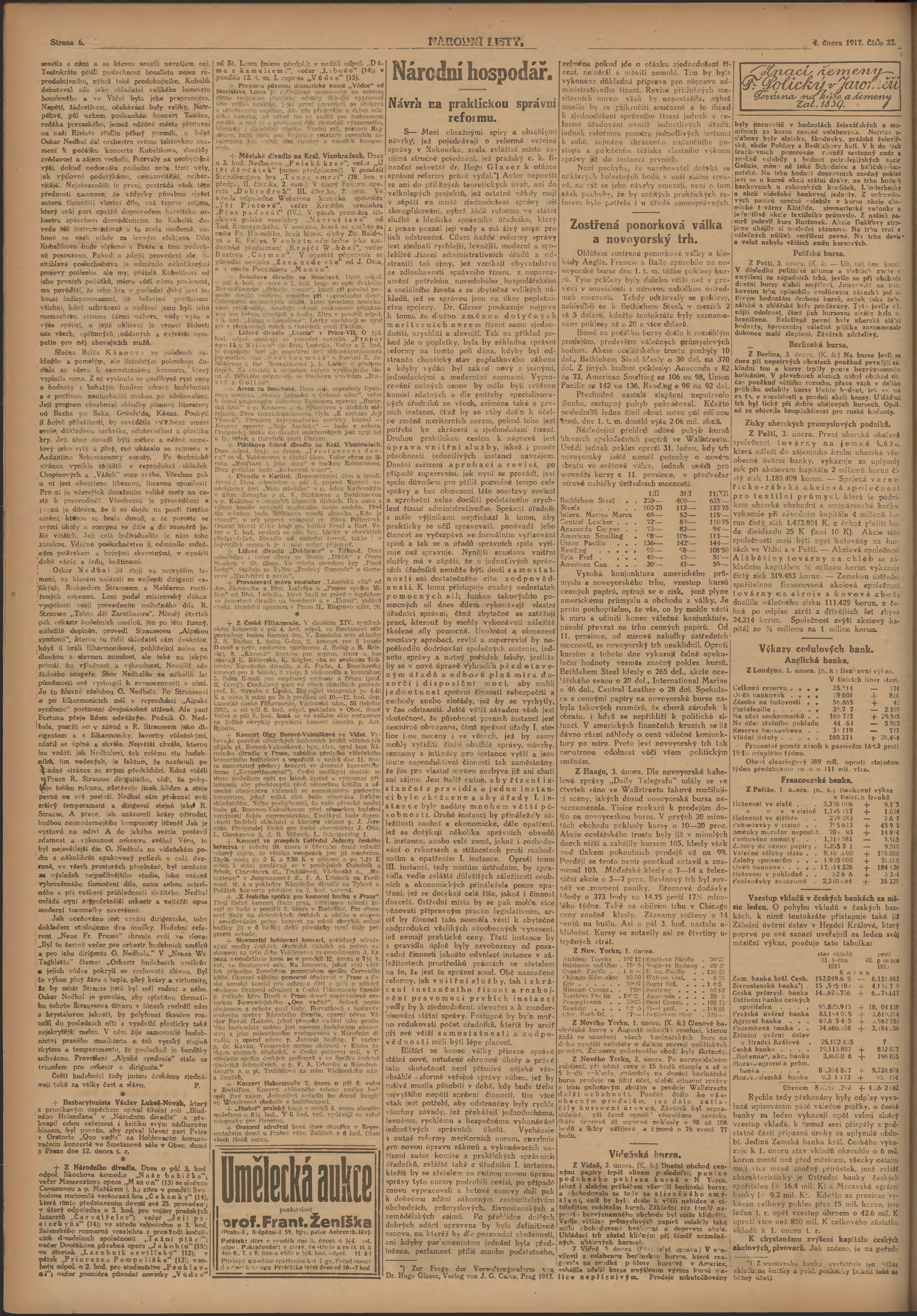 * Datum vydání výtisku: 4.2.1917 Číslo výtisku: 33 Poznámky k výtisku: ranní vydání; 1. vydání;