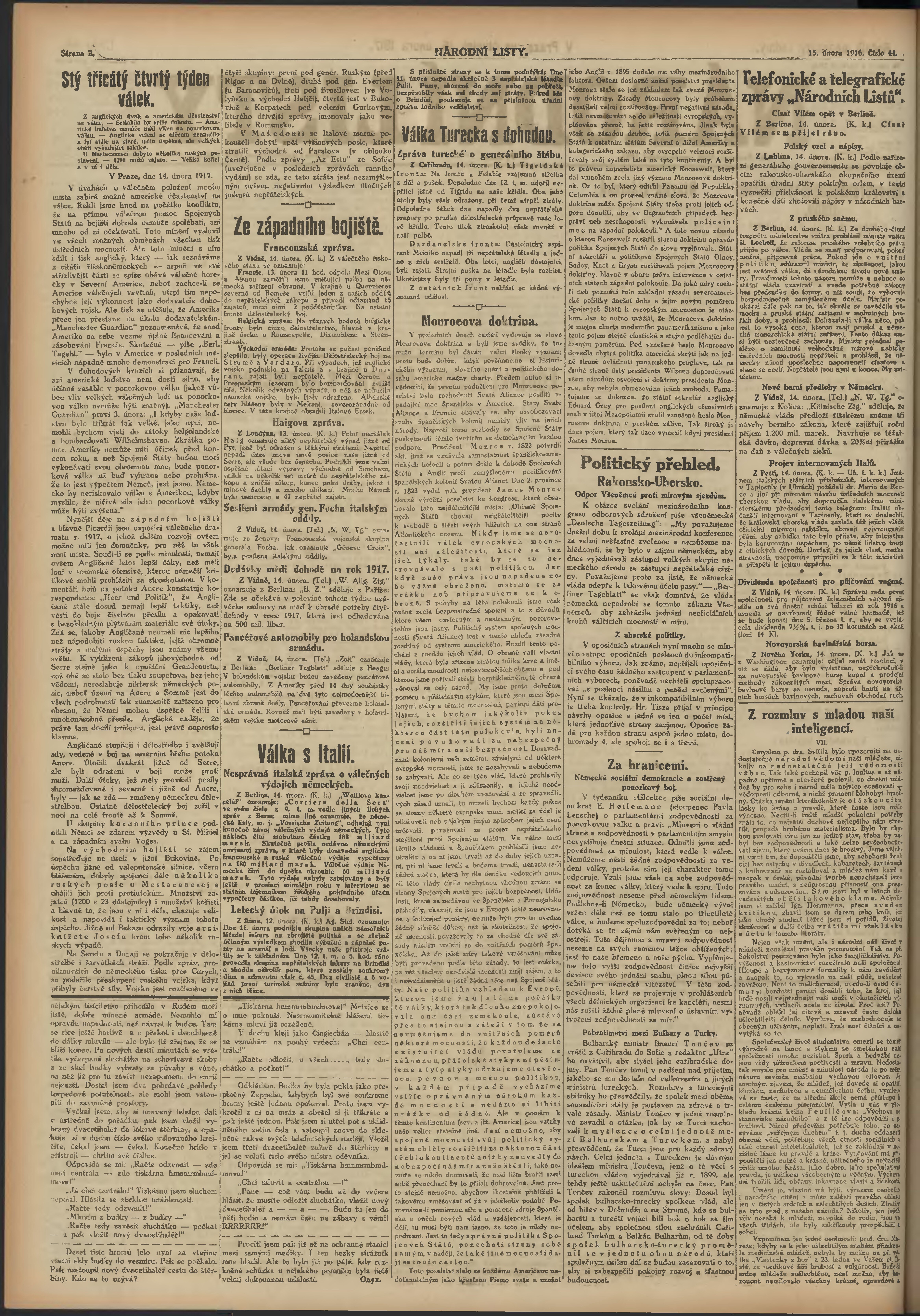 * Datum vydání výtisku: 15.2.1917 Číslo výtisku: 44 Poznámky k výtisku: ranní vydání; 1. vydání;