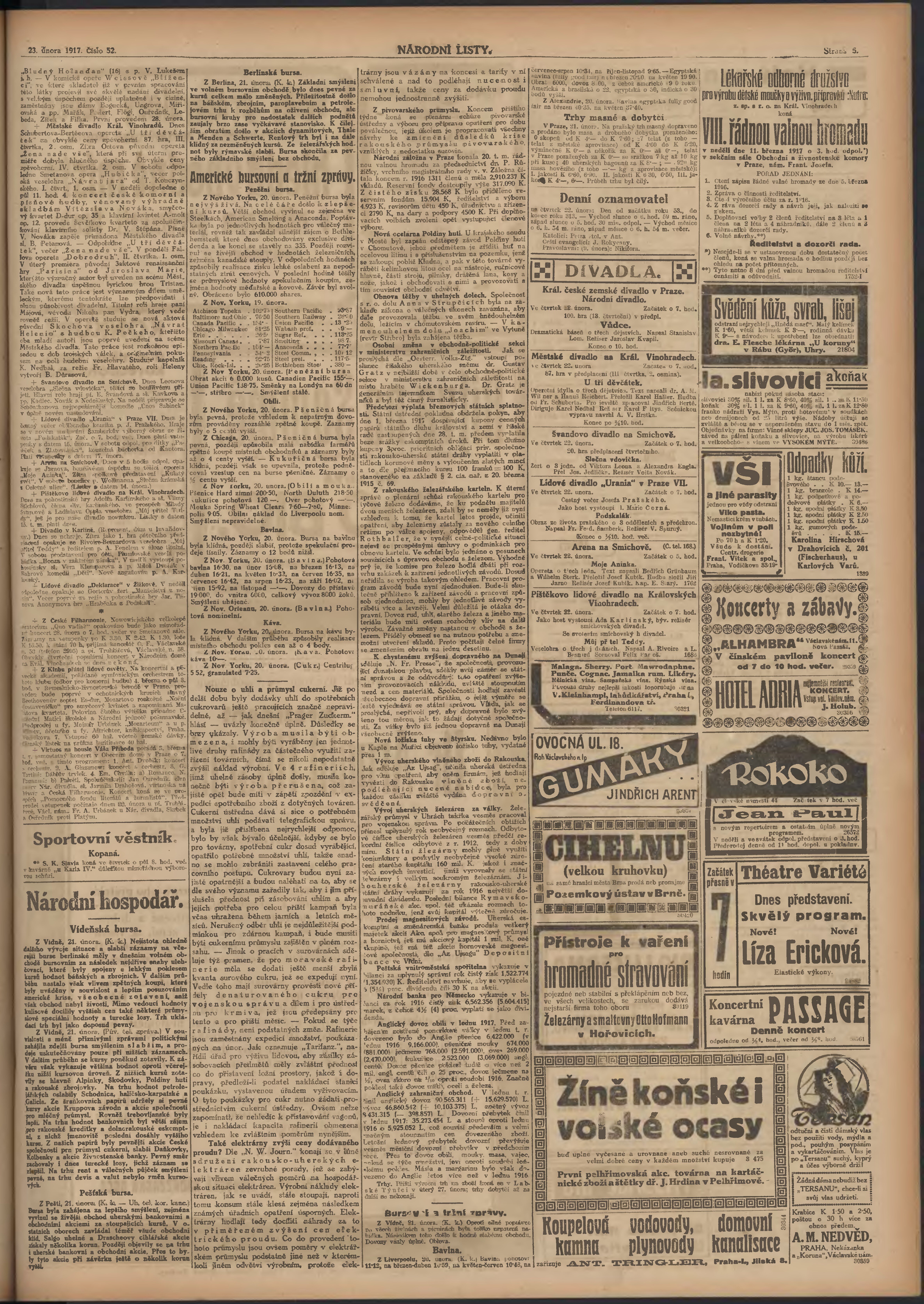 * Datum vydání výtisku: 22.2.1917 Číslo výtisku: 51 Poznámky k výtisku: ranní vydání; 1. vydání;