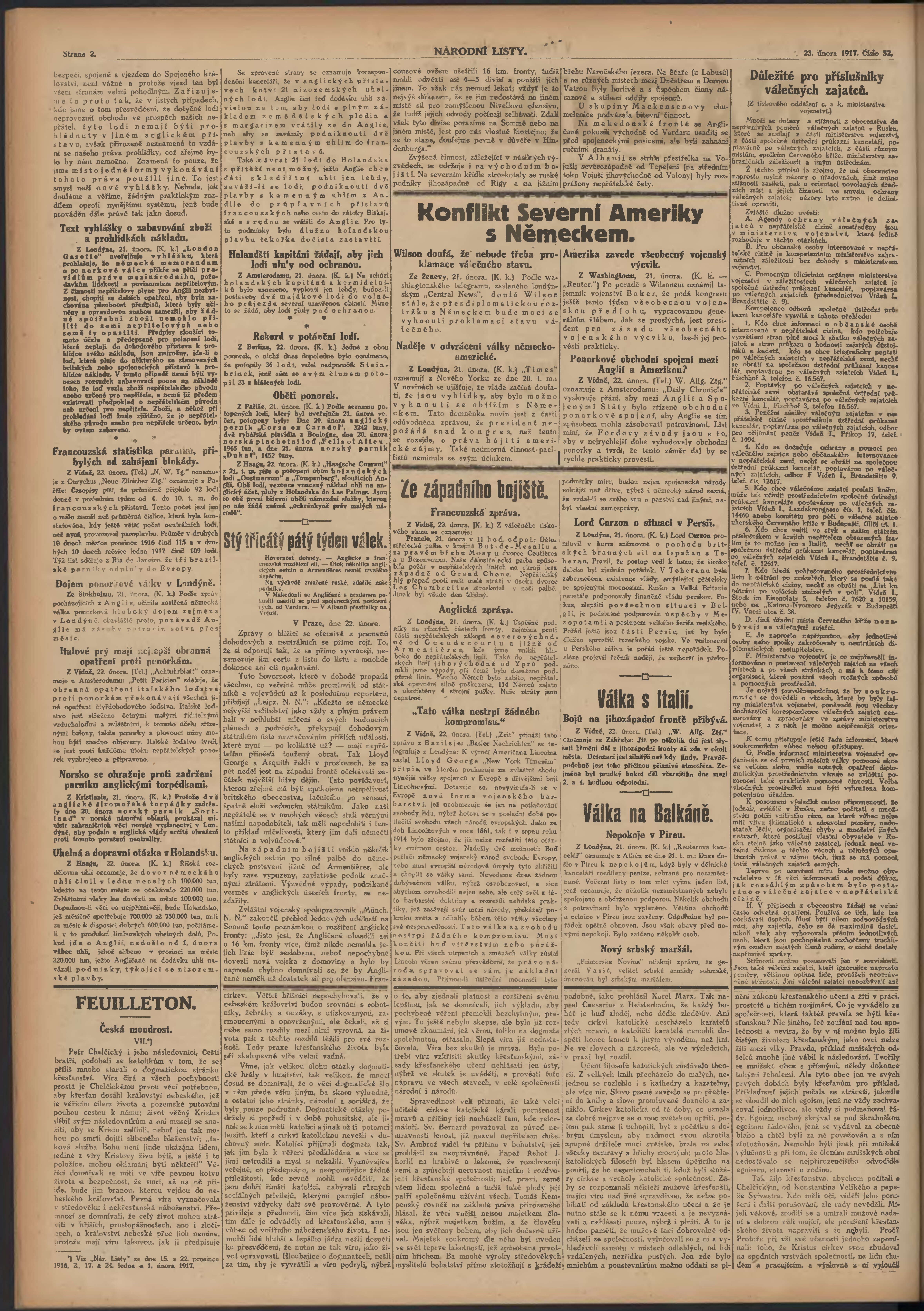 * Datum vydání výtisku: 23.2.1917 Číslo výtisku: 52 Poznámky k výtisku: ranní vydání; 1. vydání;