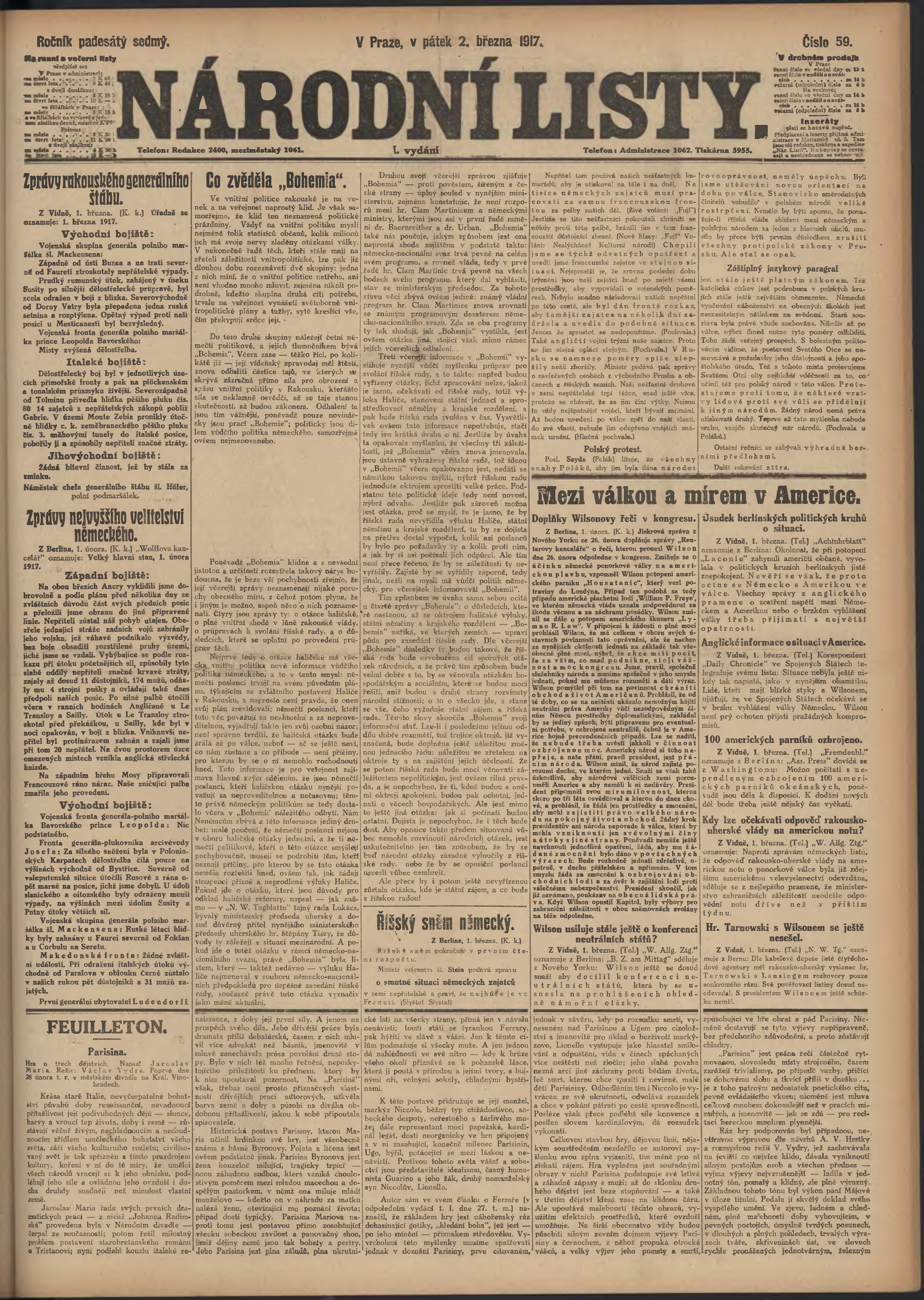 * Datum vydání výtisku: 2.3.1917 Číslo výtisku: 59 Poznámky k výtisku: ranní vydání; 1. vydání;