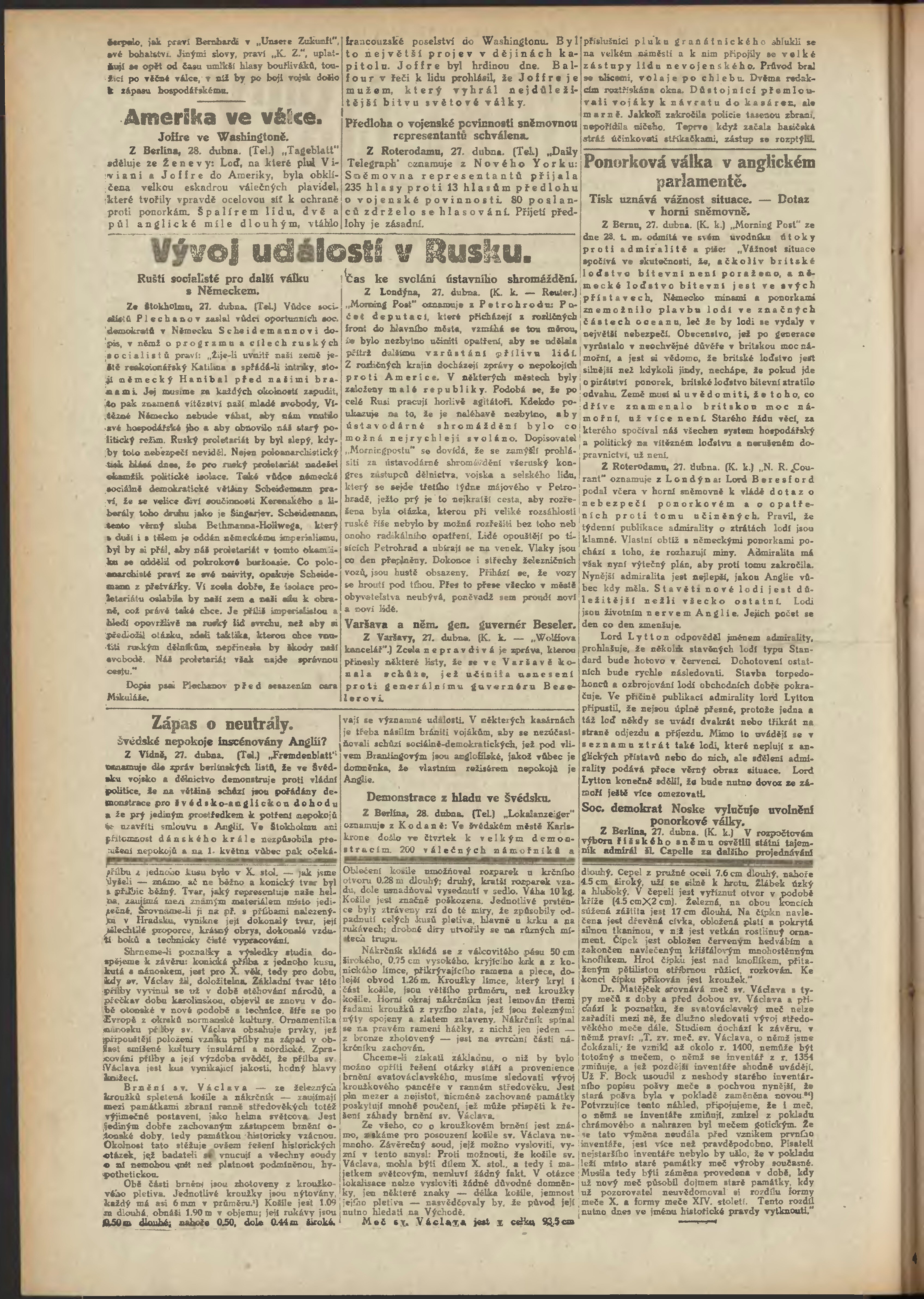 * Datum vydání výtisku: 28.4.1917 Číslo výtisku: 115 Poznámky k výtisku: večerní vydání;