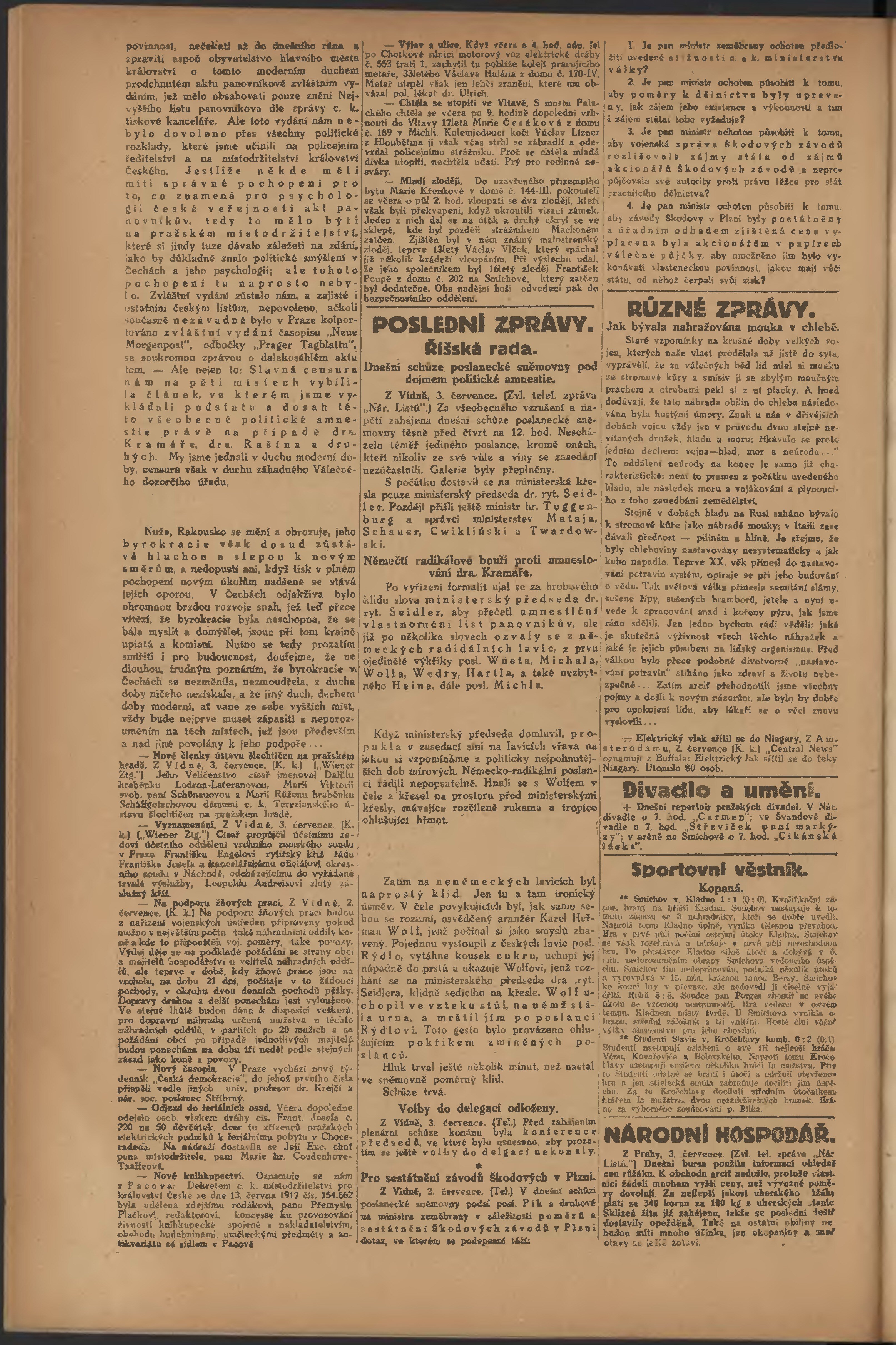 * Datum vydání výtisku: 3.7.1917 Číslo výtisku: 180 Poznámky k výtisku: večerní vydání;