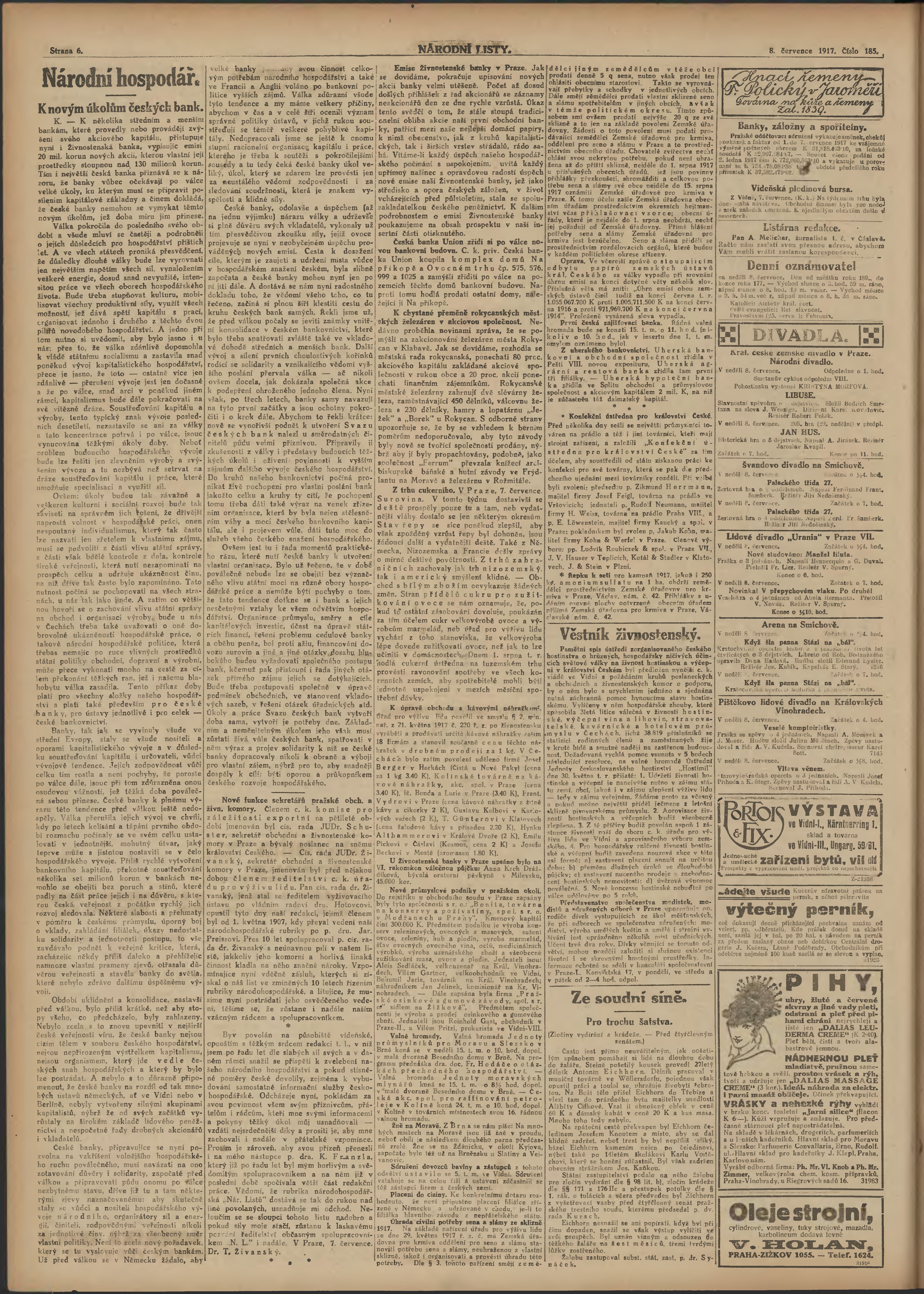 * Datum vydání výtisku: 8.7.1917 Číslo výtisku: 185 Poznámky k výtisku: ranní vydání; 1. vydání;