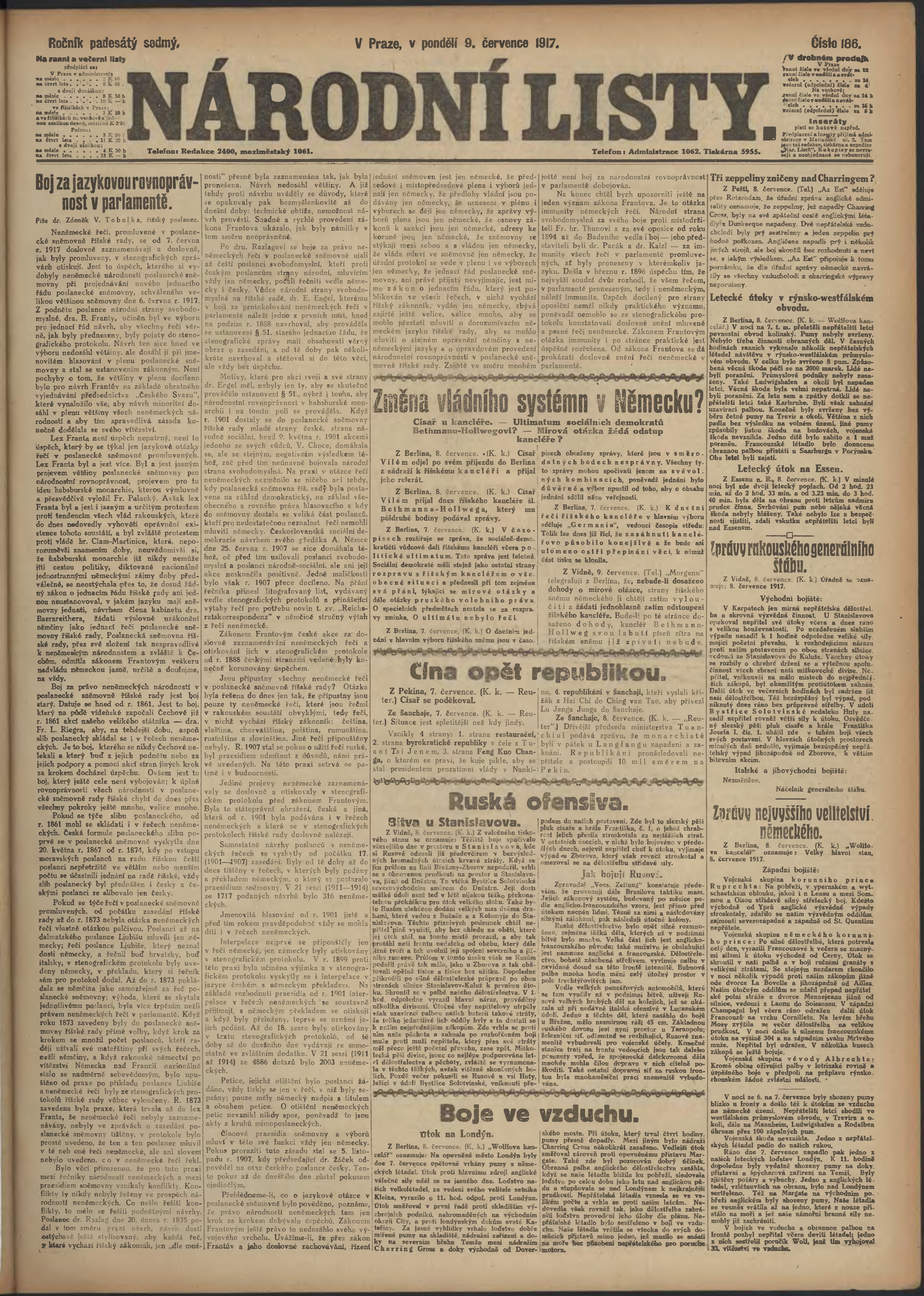 * Datum vydání výtisku: 9.7.1917 Číslo výtisku: 186 Poznámky k výtisku: ranní vydání;