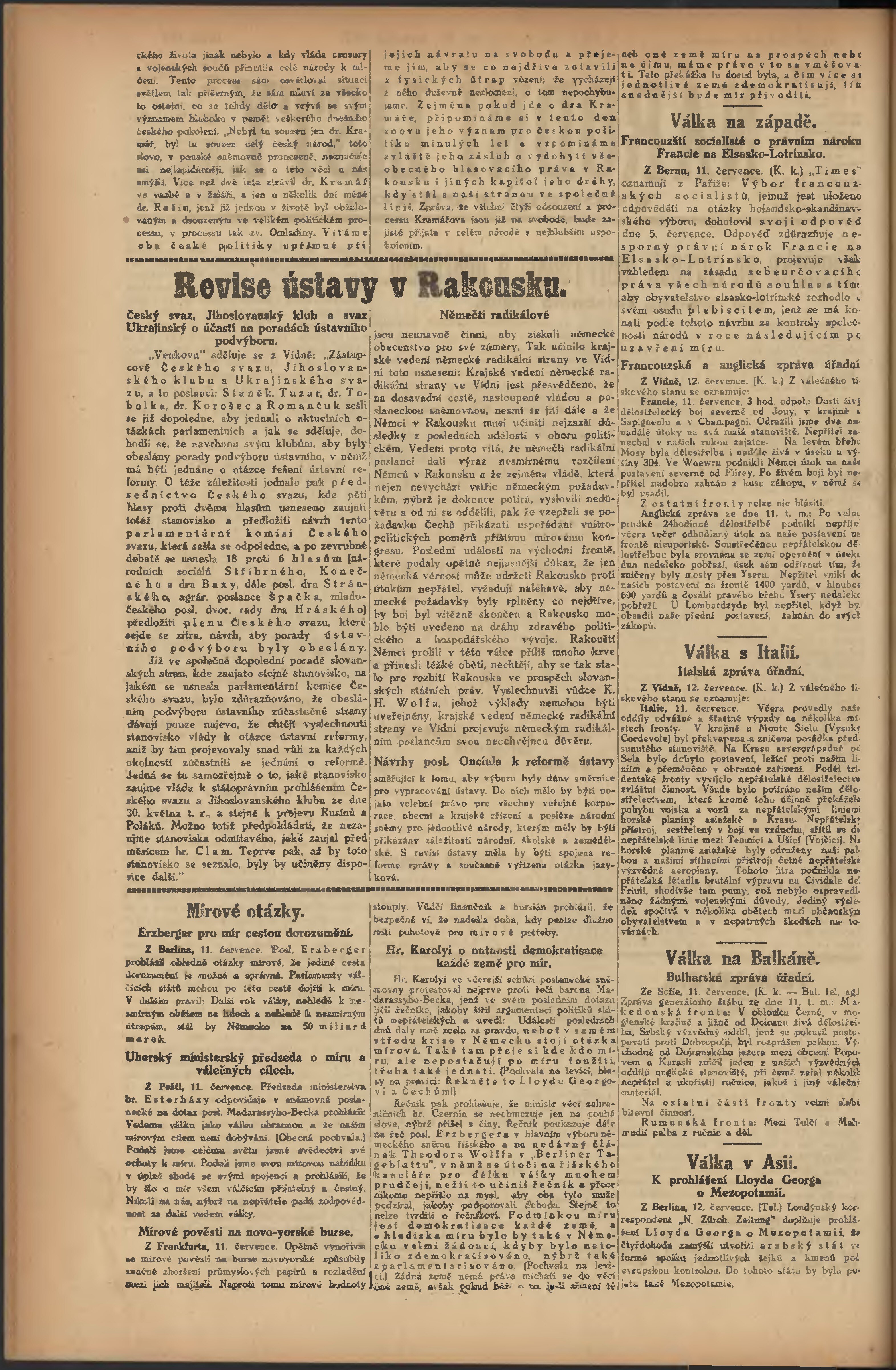* Datum vydání výtisku: 12.7.1917 Číslo výtisku: 189 Poznámky k výtisku: večerní vydání;
