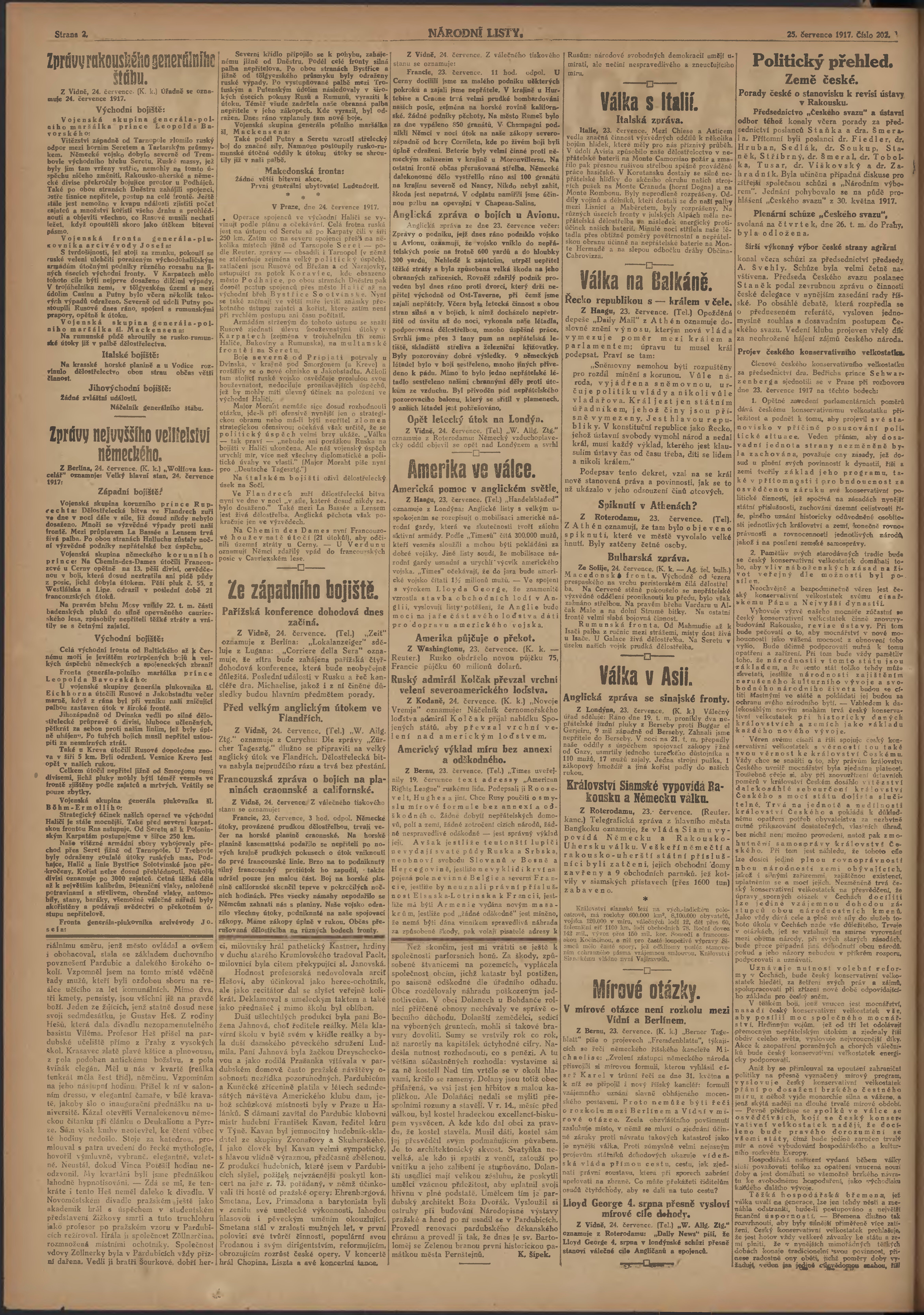 * Datum vydání výtisku: 25.7.1917 Číslo výtisku: 202 Poznámky k výtisku: ranní vydání; 2. vydání pro Prahu;