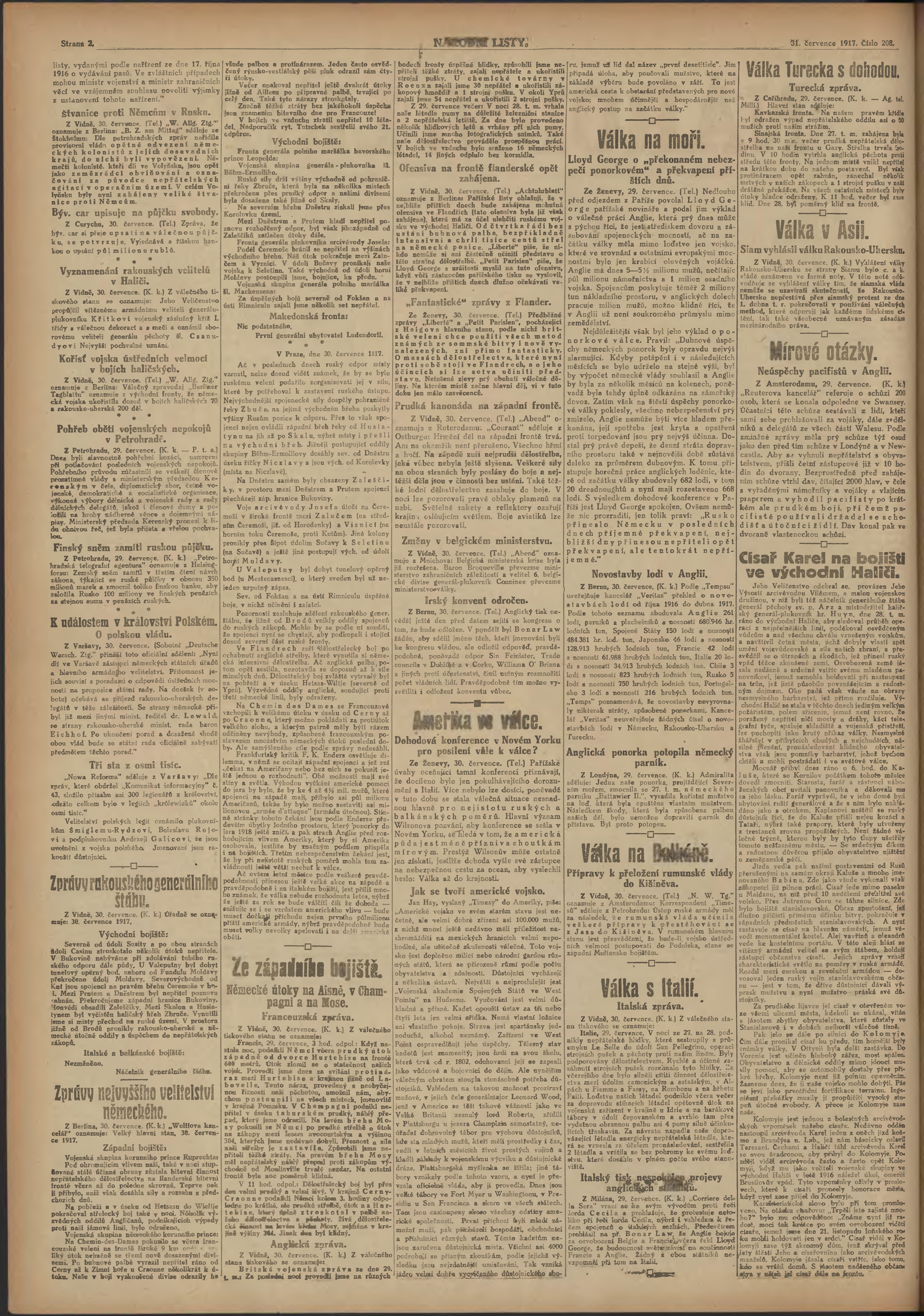 * Datum vydání výtisku: 31.7.1917 Číslo výtisku: 208 Poznámky k výtisku: ranní vydání; 2. vydání pro Prahu;