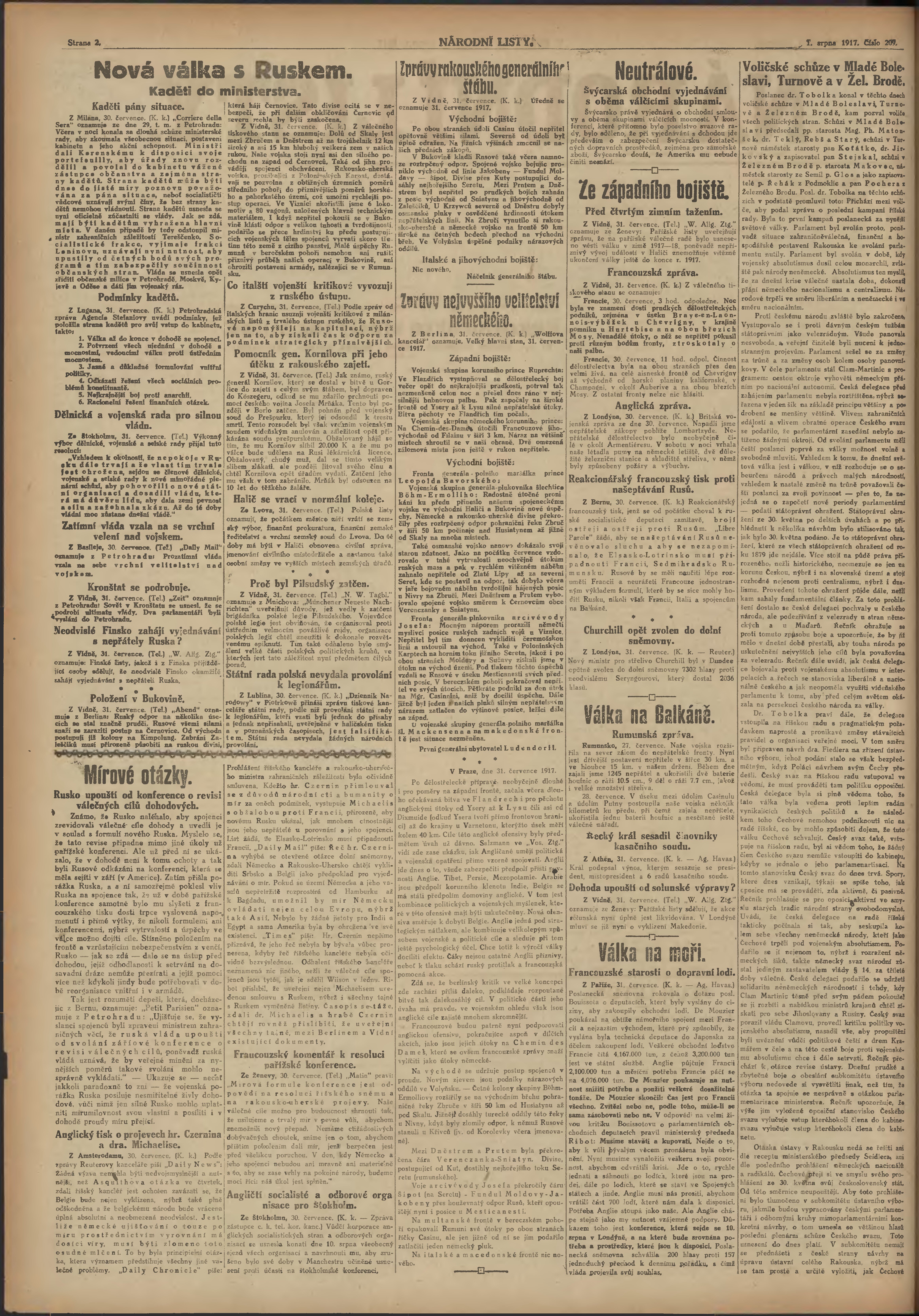 * Datum vydání výtisku: 1.8.1917 Číslo výtisku: 209 Poznámky k výtisku: ranní vydání; 2. vydání pro Prahu;