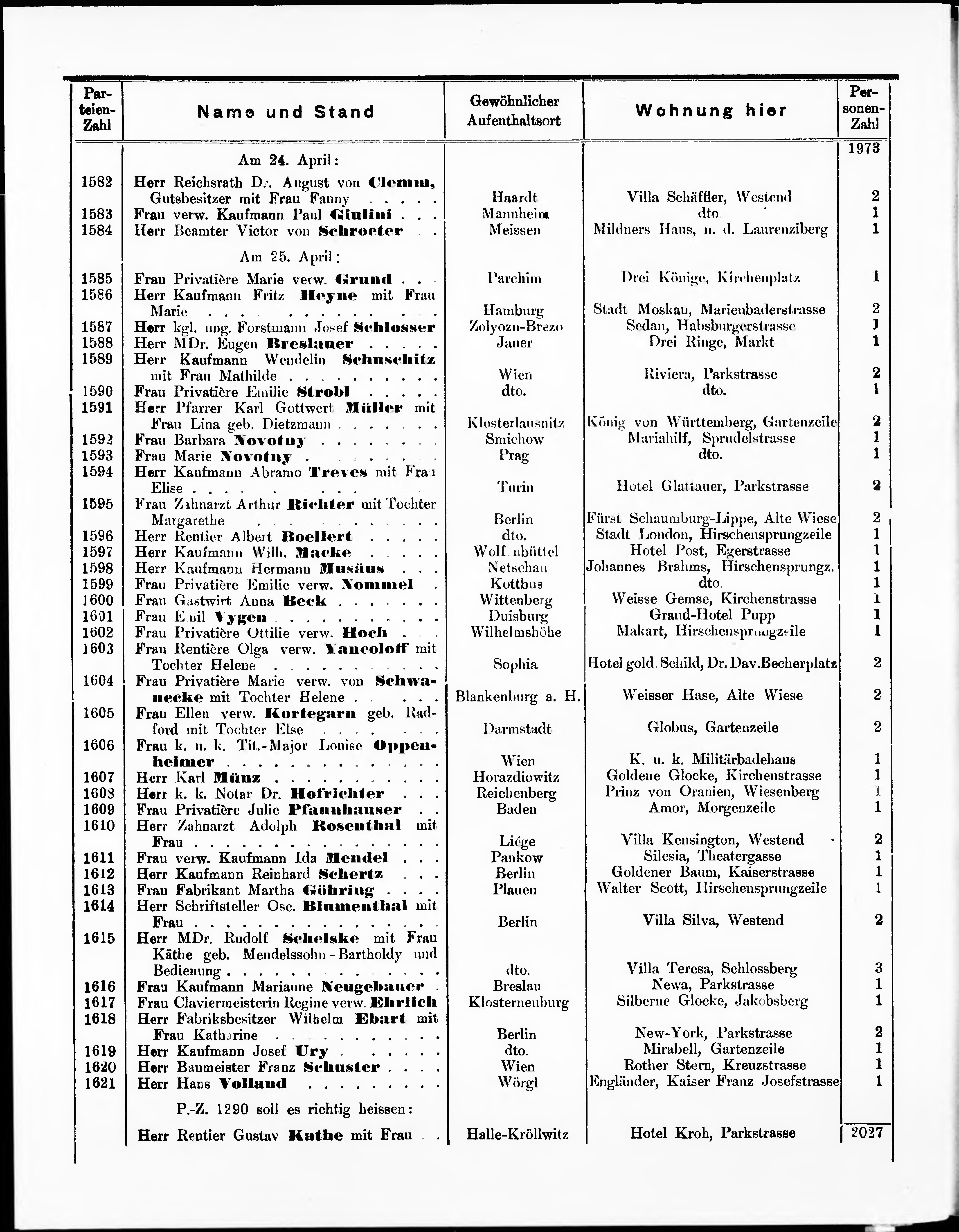 Liste der im Jahre ... angekommenen und abgereisten Kur- und Badegäste in Karlsb...