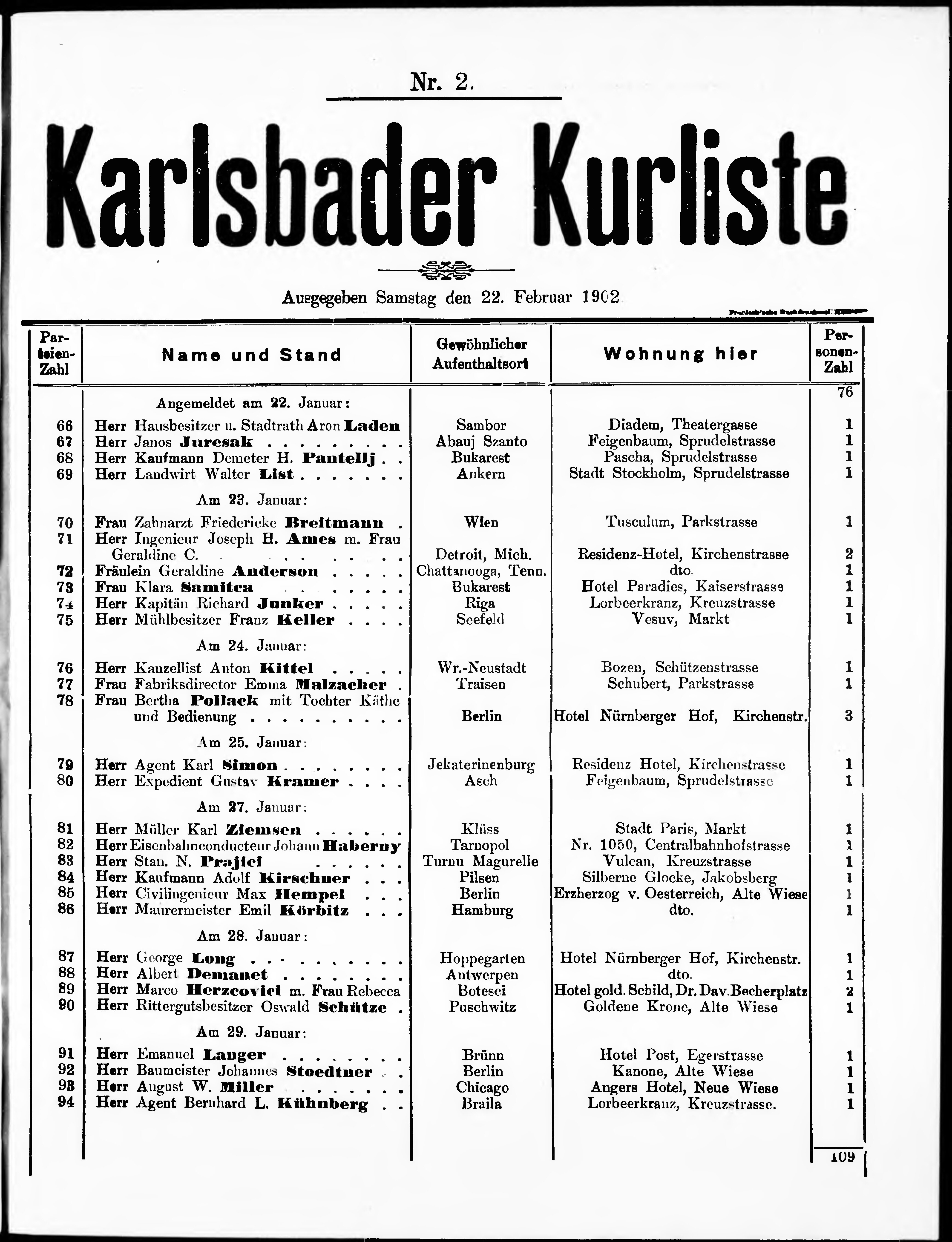 Liste der P.T. Curgäste in Carlsbad ...
