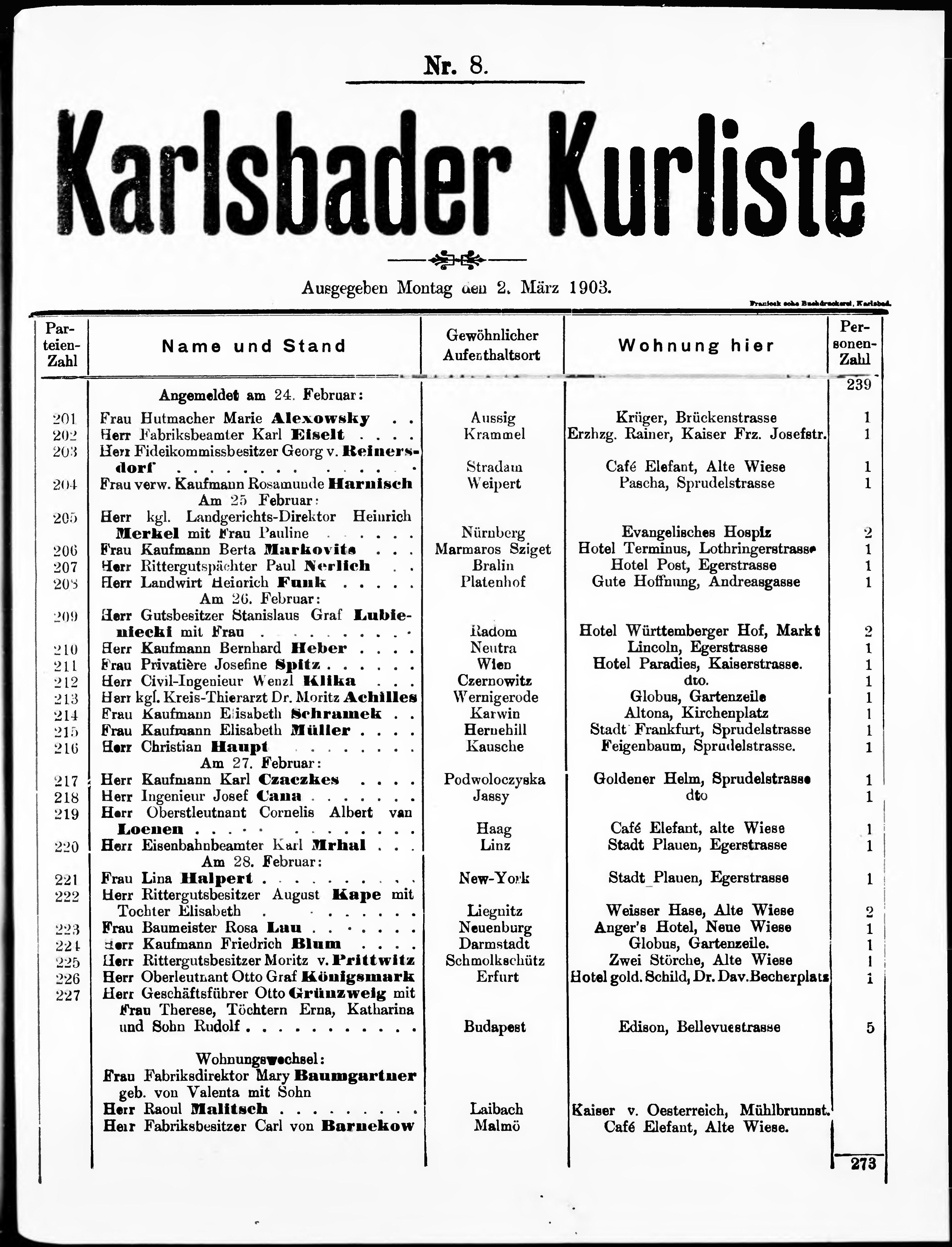 Liste der im Jahre ... angekommenen und abgereisten Kur- und Badegäste in Karlsb...