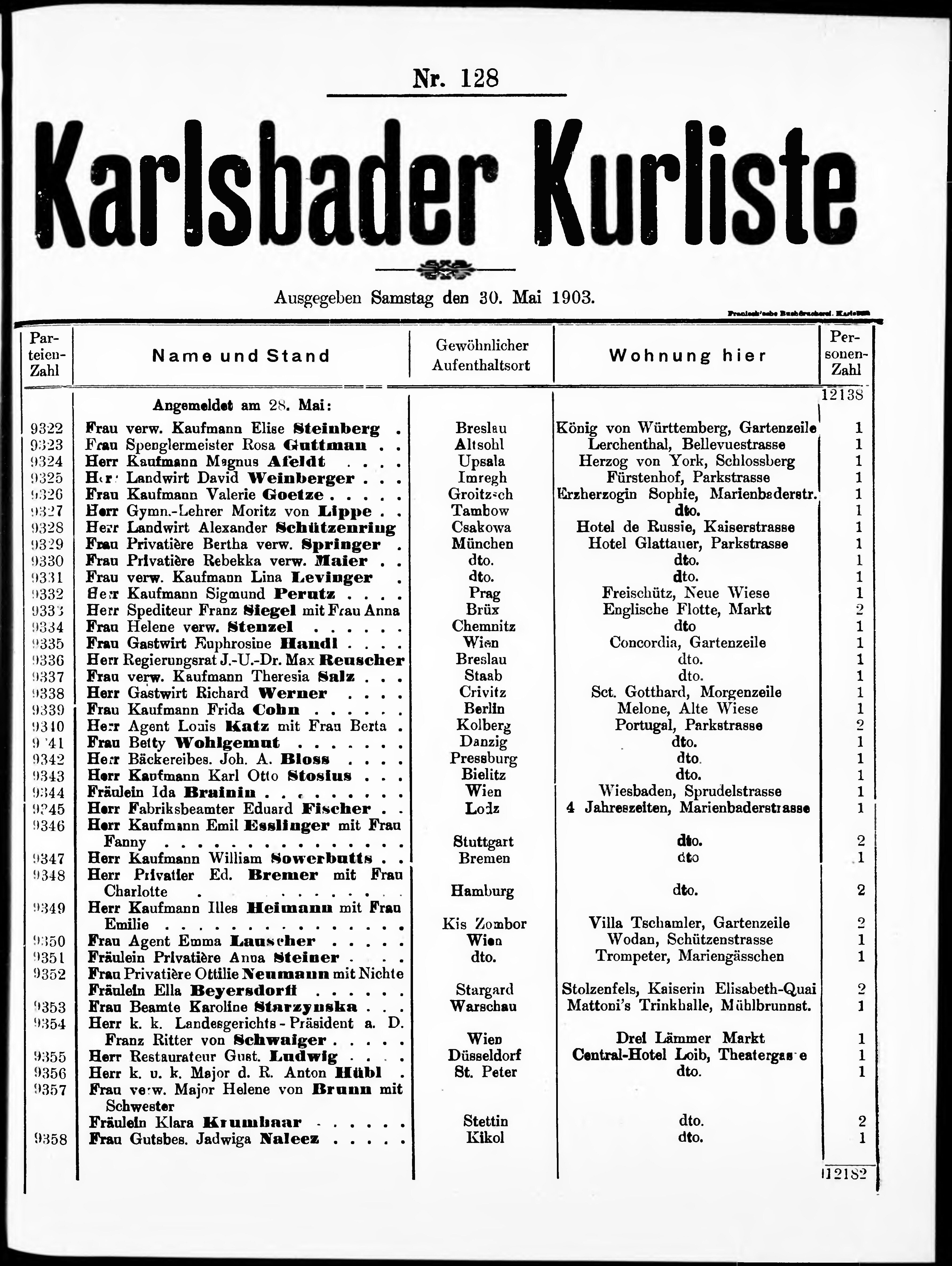 Liste der im Jahre ... angekommenen und abgereisten Kur- und Badegäste in Karlsb...