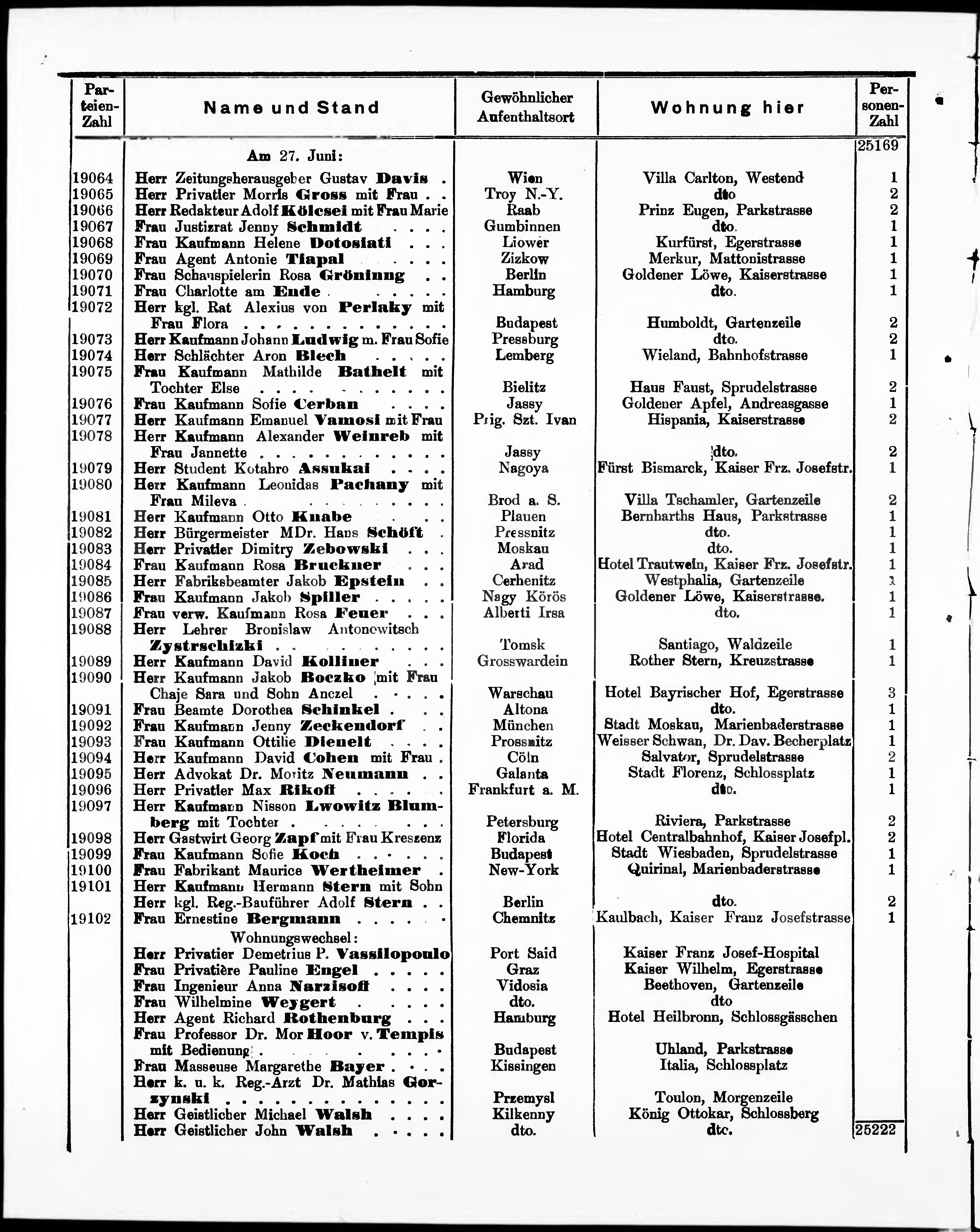 Liste der im Jahre ... angekommenen und abgereisten Kur- und Badegäste in Karlsb...