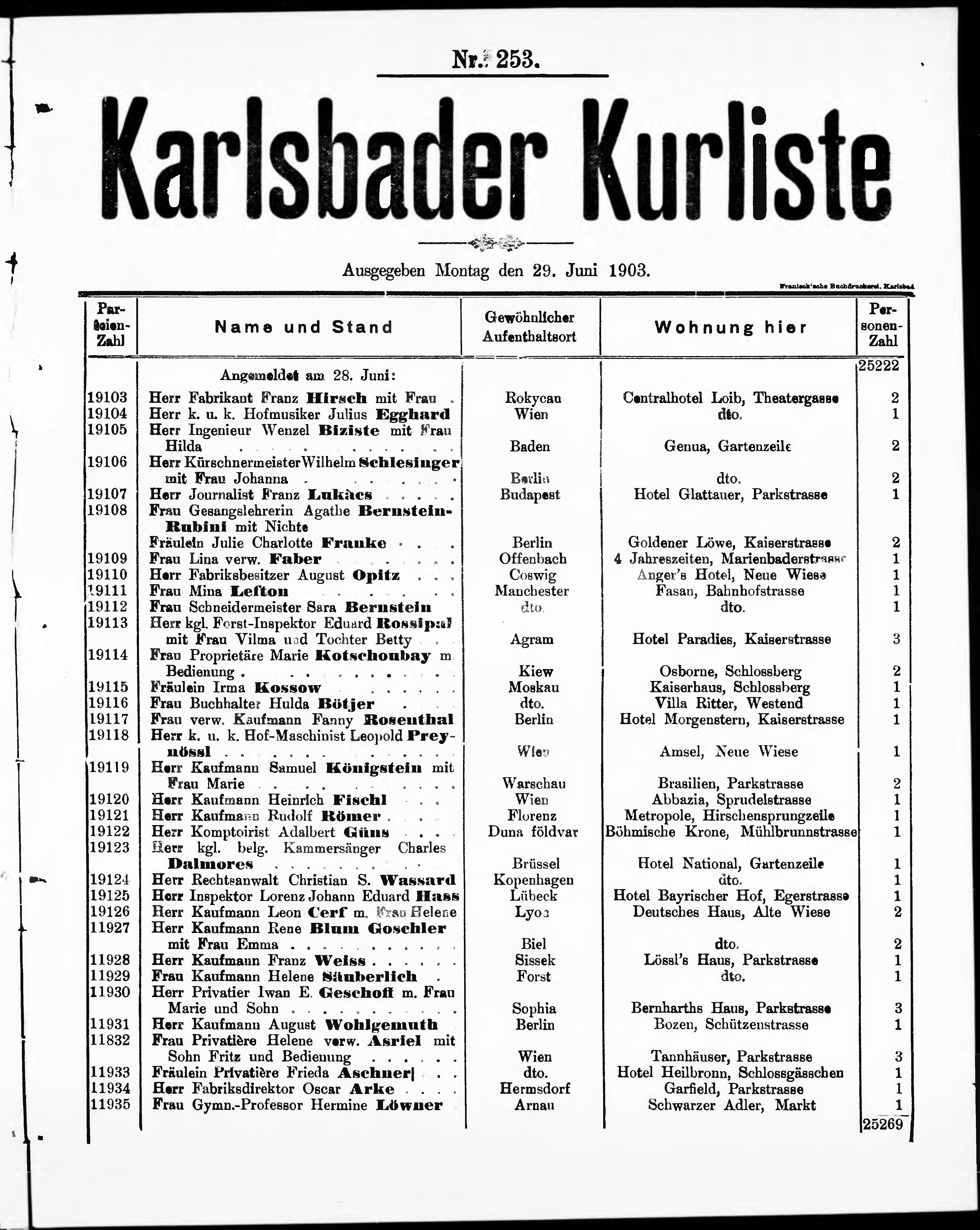 Liste der im Jahre ... angekommenen und abgereisten Kur- und Badegäste in Karlsb...