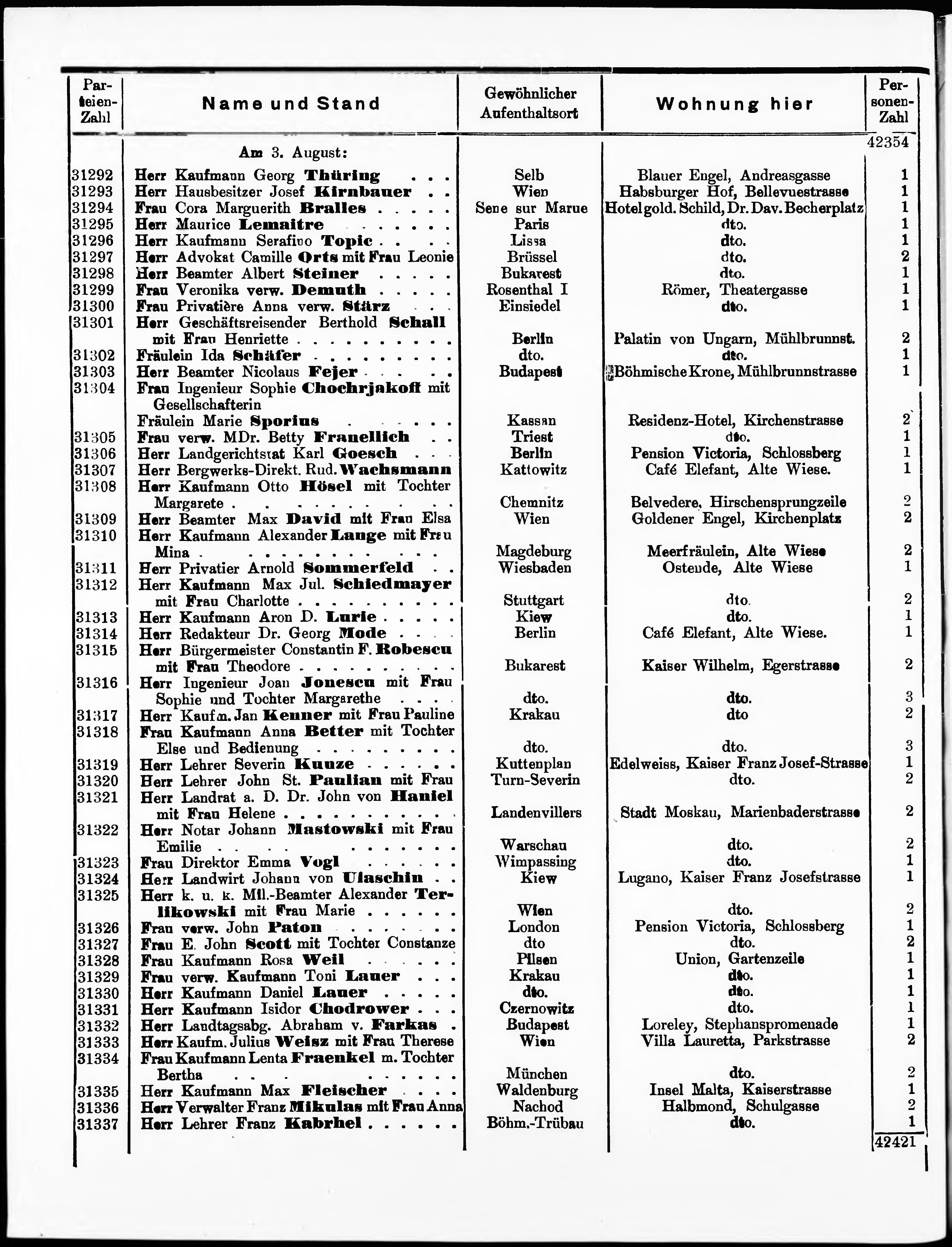 * Datum vydání výtisku: 5.8.1903 Číslo výtisku: 412