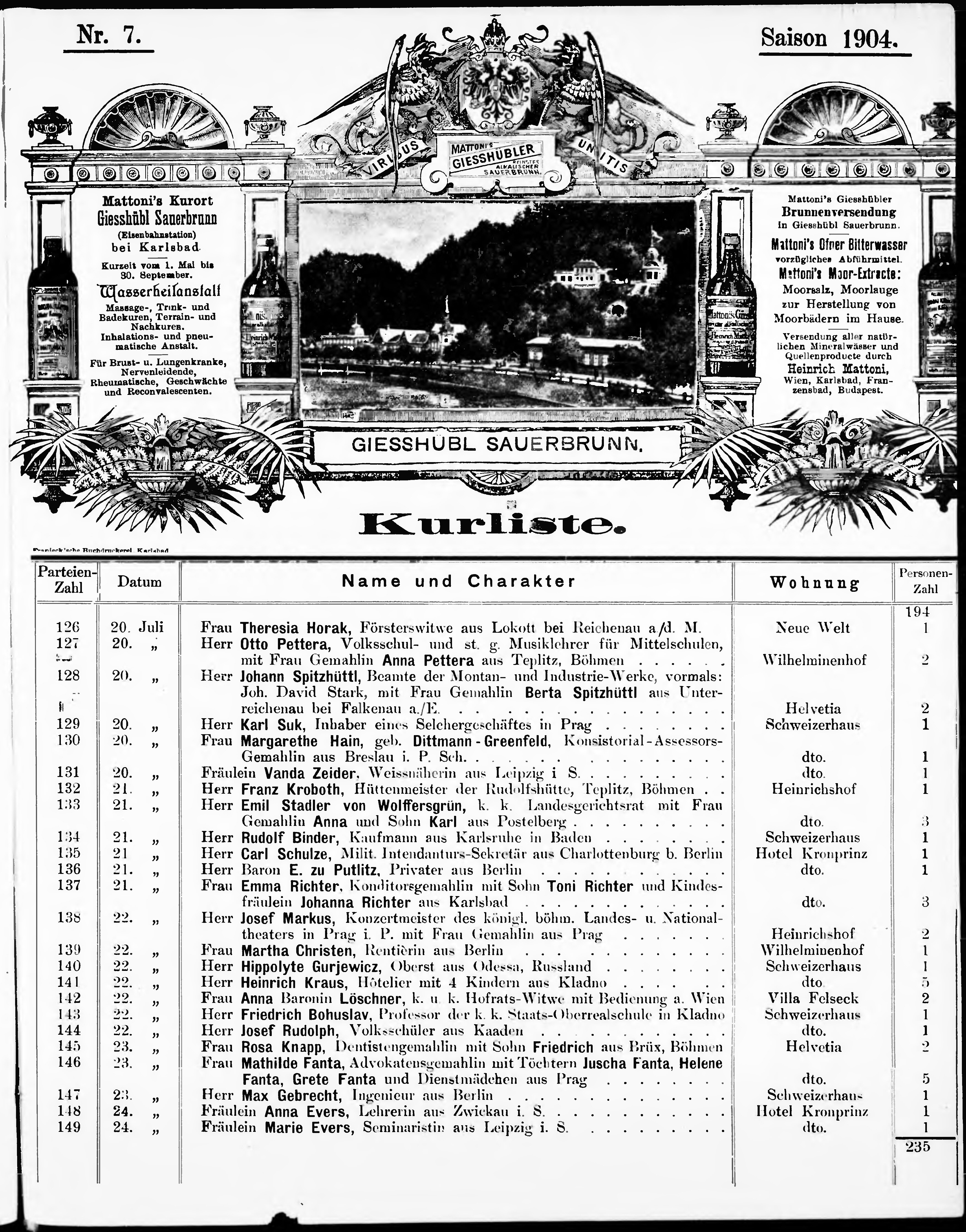 Liste der im Jahre ... angekommenen und abgereisten Kur- und Badegäste in Karlsb...