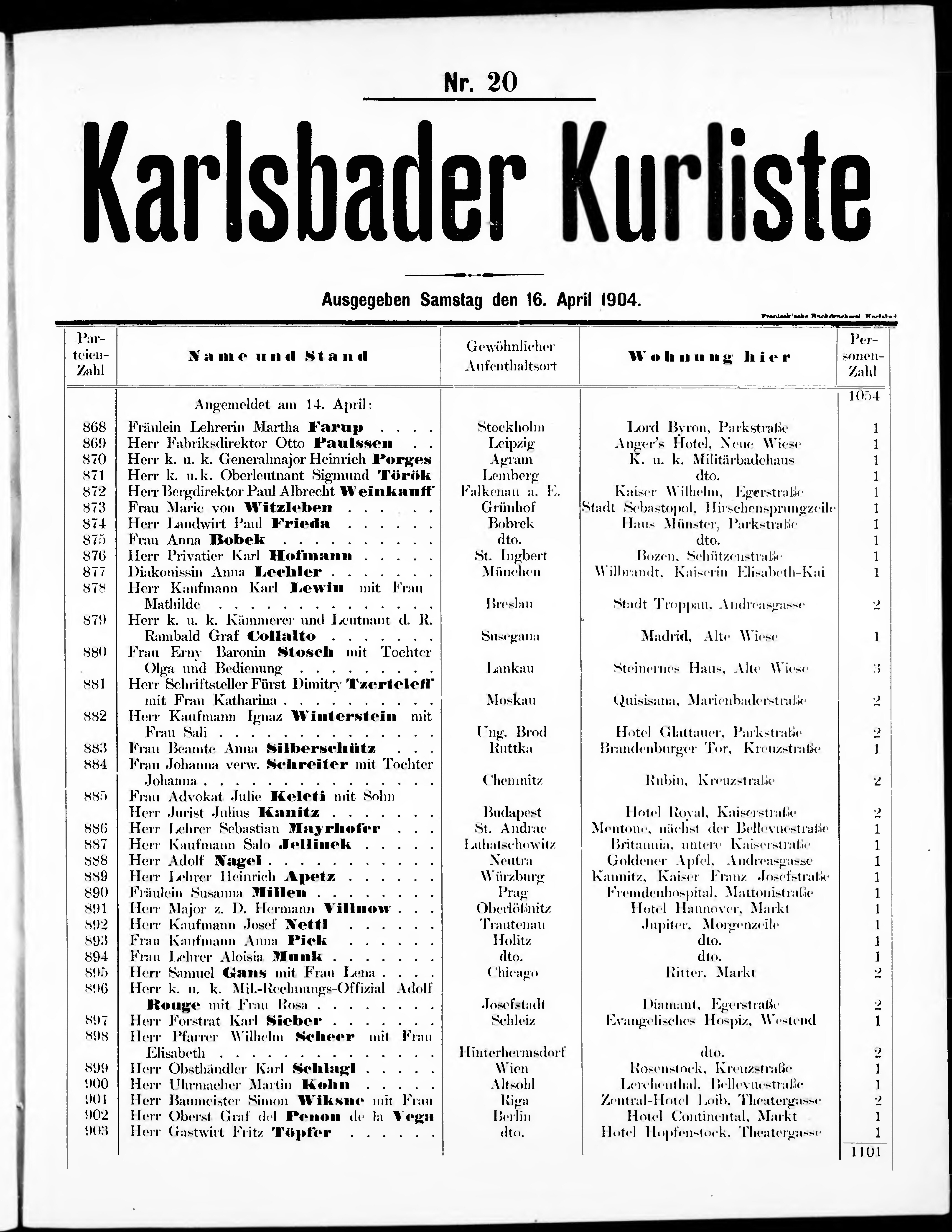 Liste der im Jahre ... angekommenen und abgereisten Kur- und Badegäste in Karlsb...