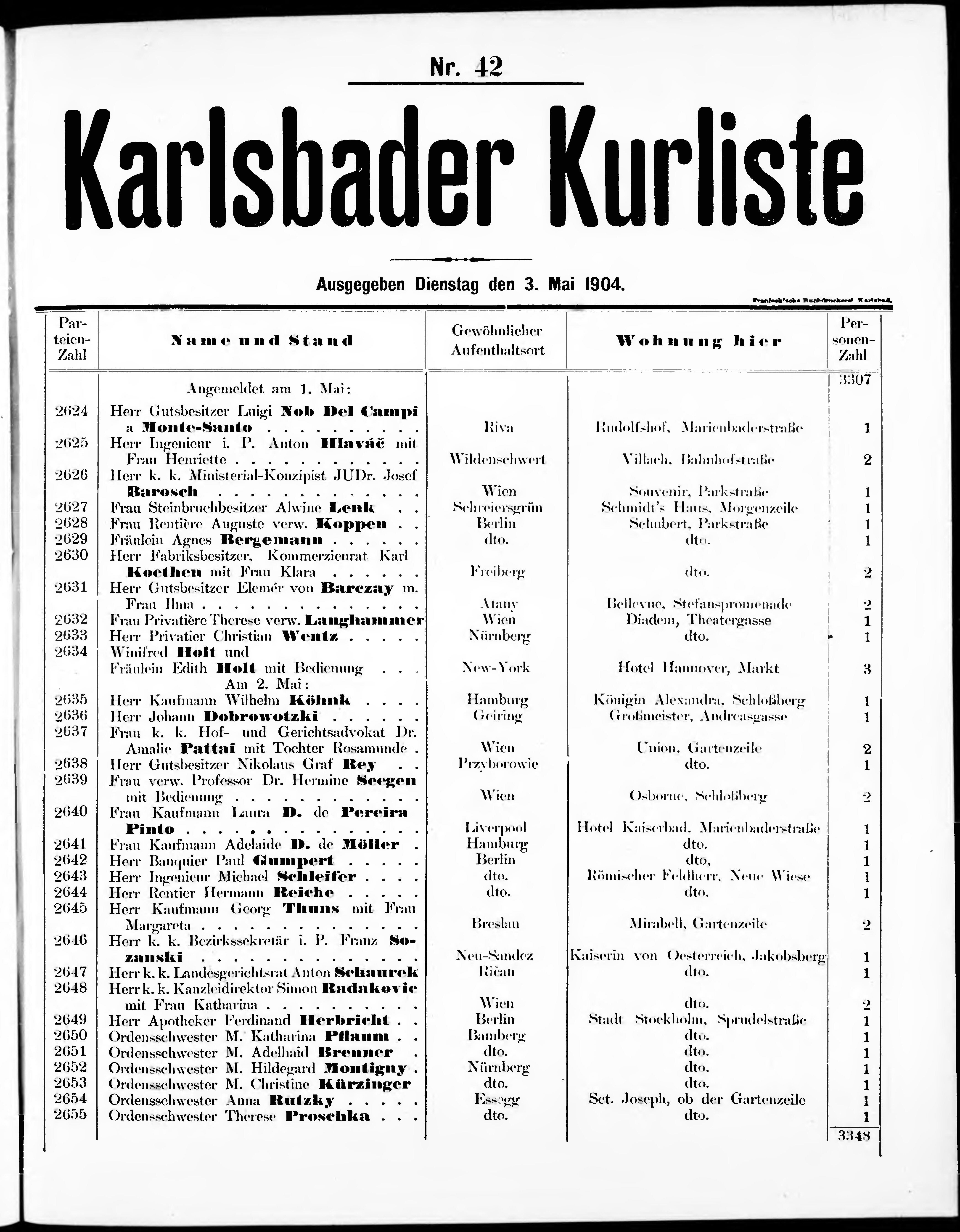 Liste der im Jahre ... angekommenen und abgereisten Kur- und Badegäste in Karlsb...