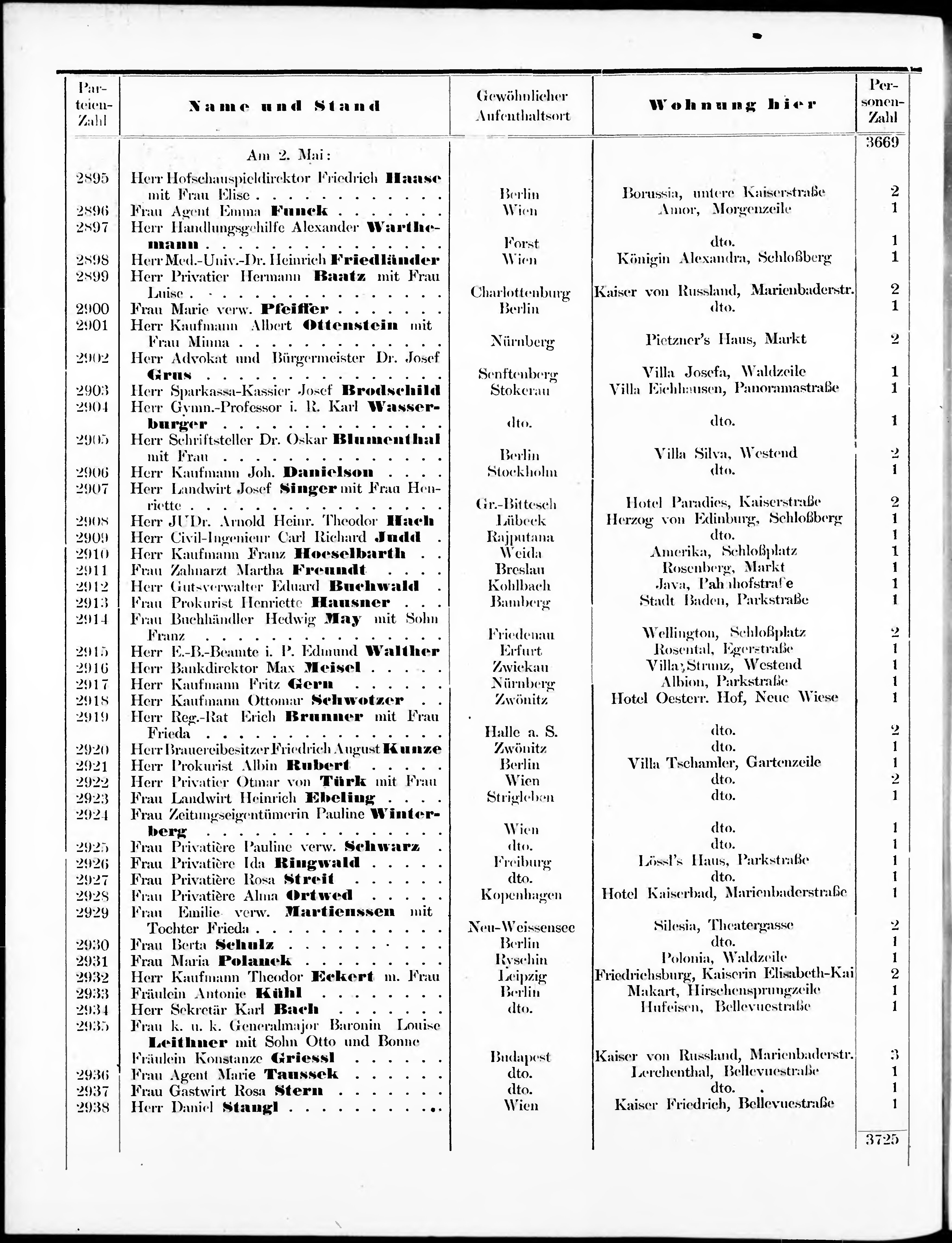 Liste der im Jahre ... angekommenen und abgereisten Kur- und Badegäste in Karlsb...