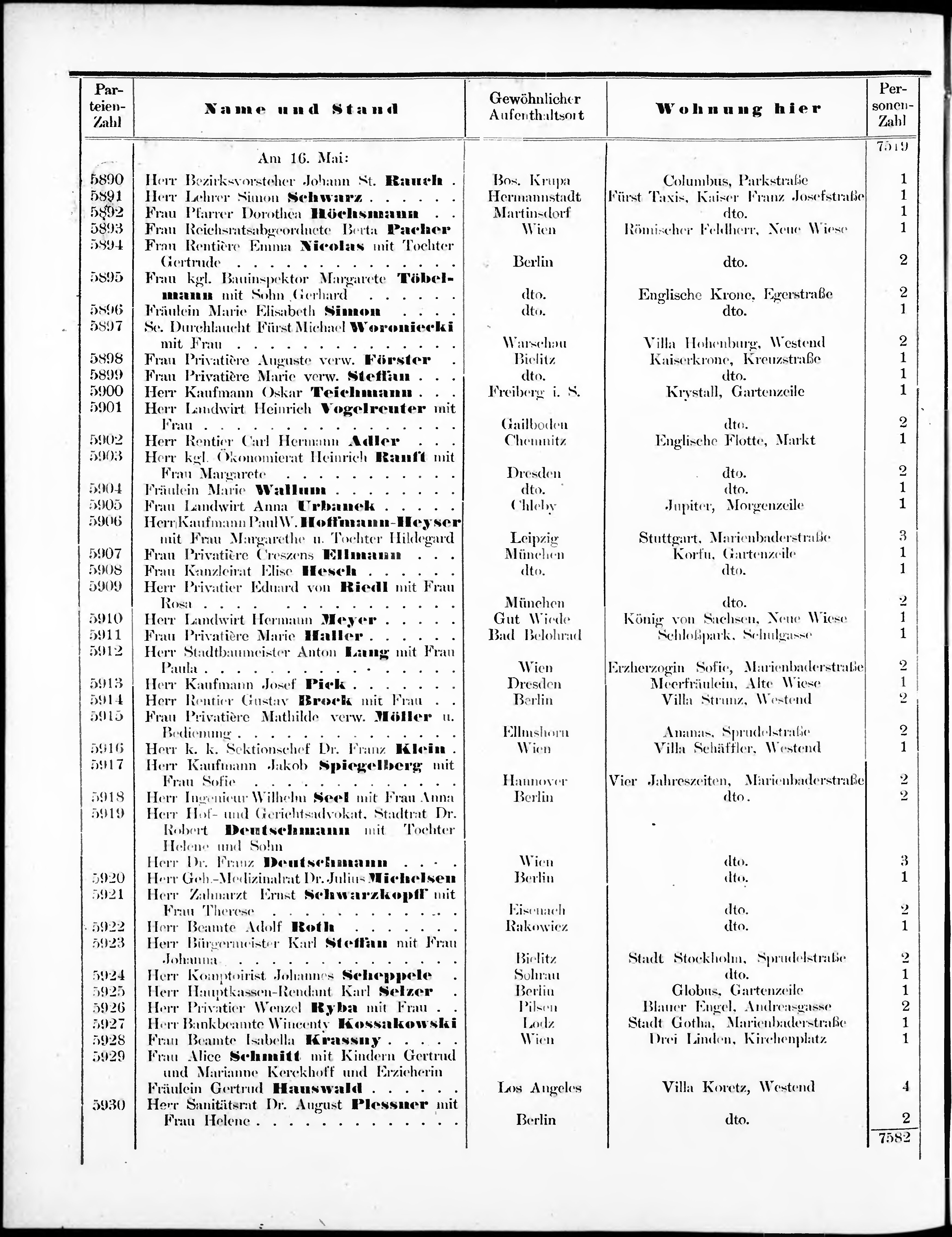 Liste der im Jahre ... angekommenen und abgereisten Kur- und Badegäste in Karlsb...