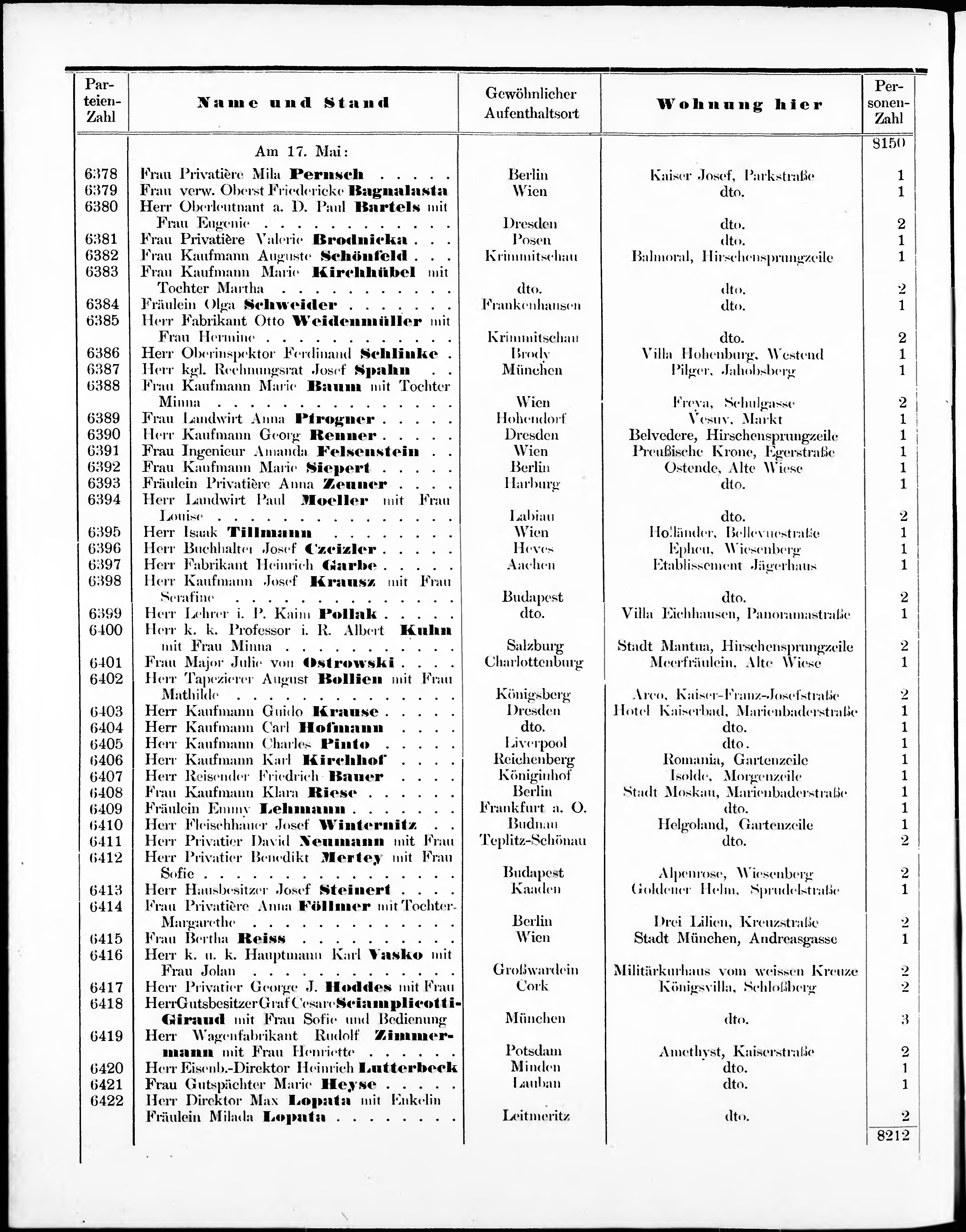 Liste der im Jahre ... angekommenen und abgereisten Kur- und Badegäste in Karlsb...