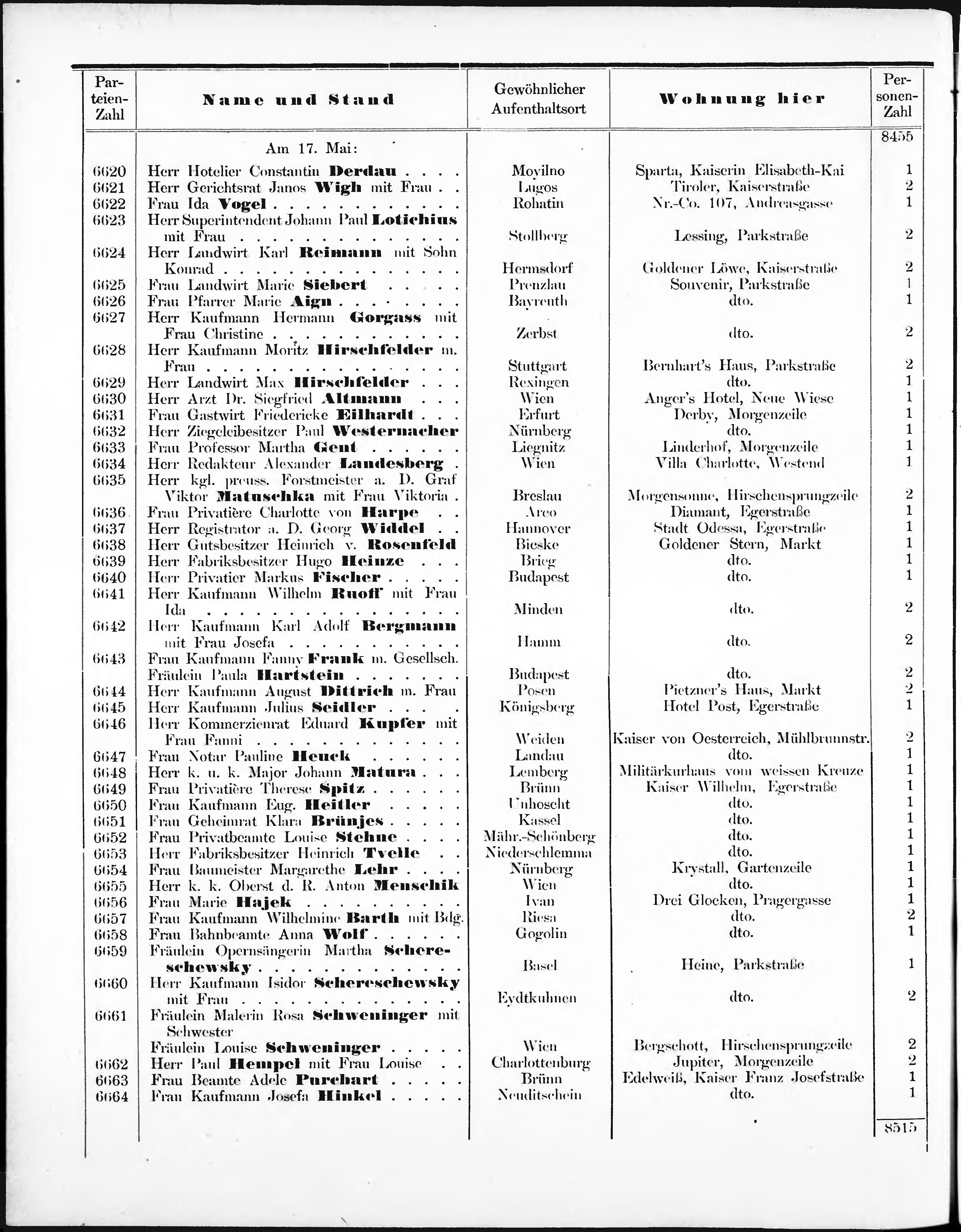 Liste der im Jahre ... angekommenen und abgereisten Kur- und Badegäste in Karlsb...