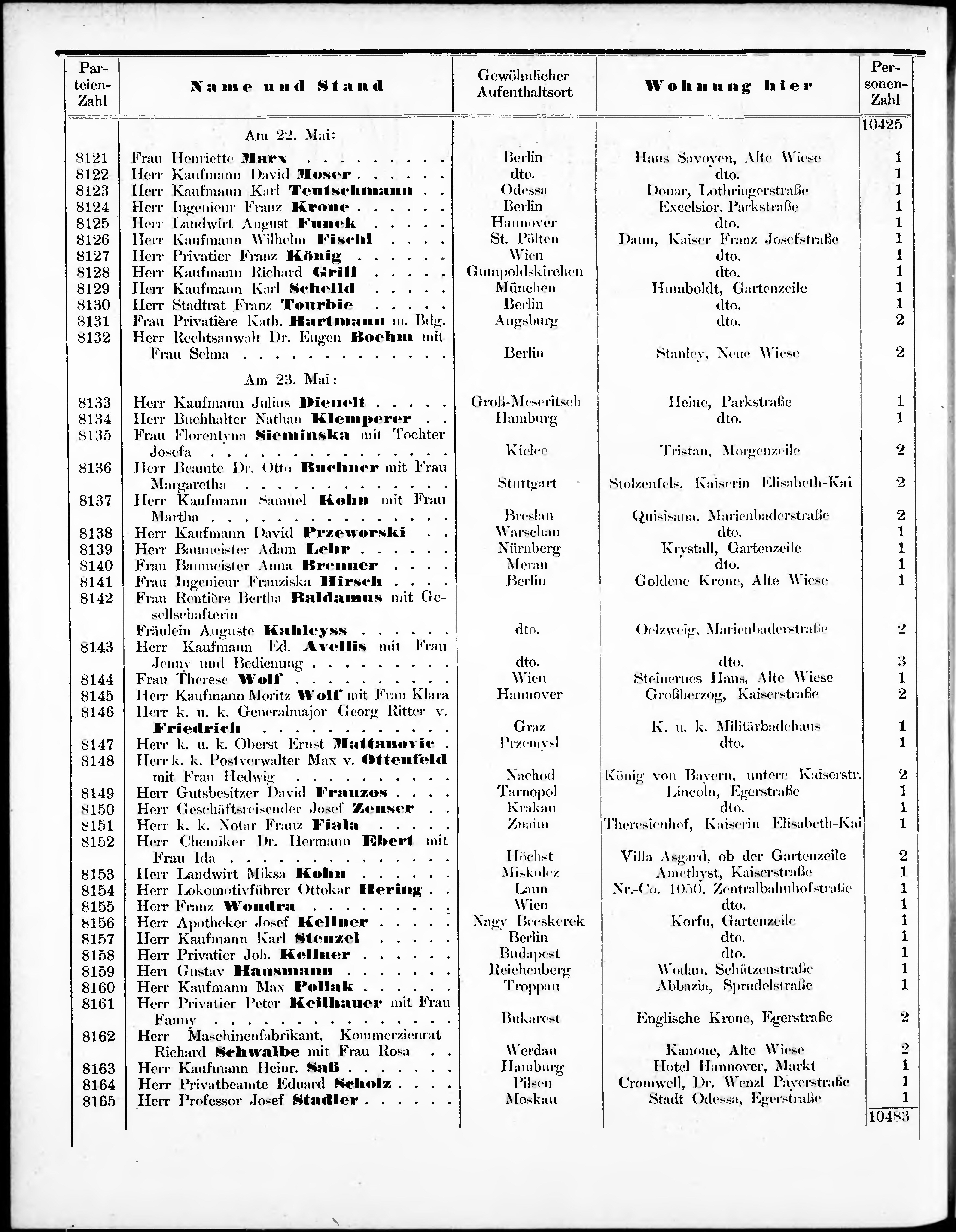 Liste der angekommenen und abgereisten P. T. Curgäste in Carlsbad im Jahre