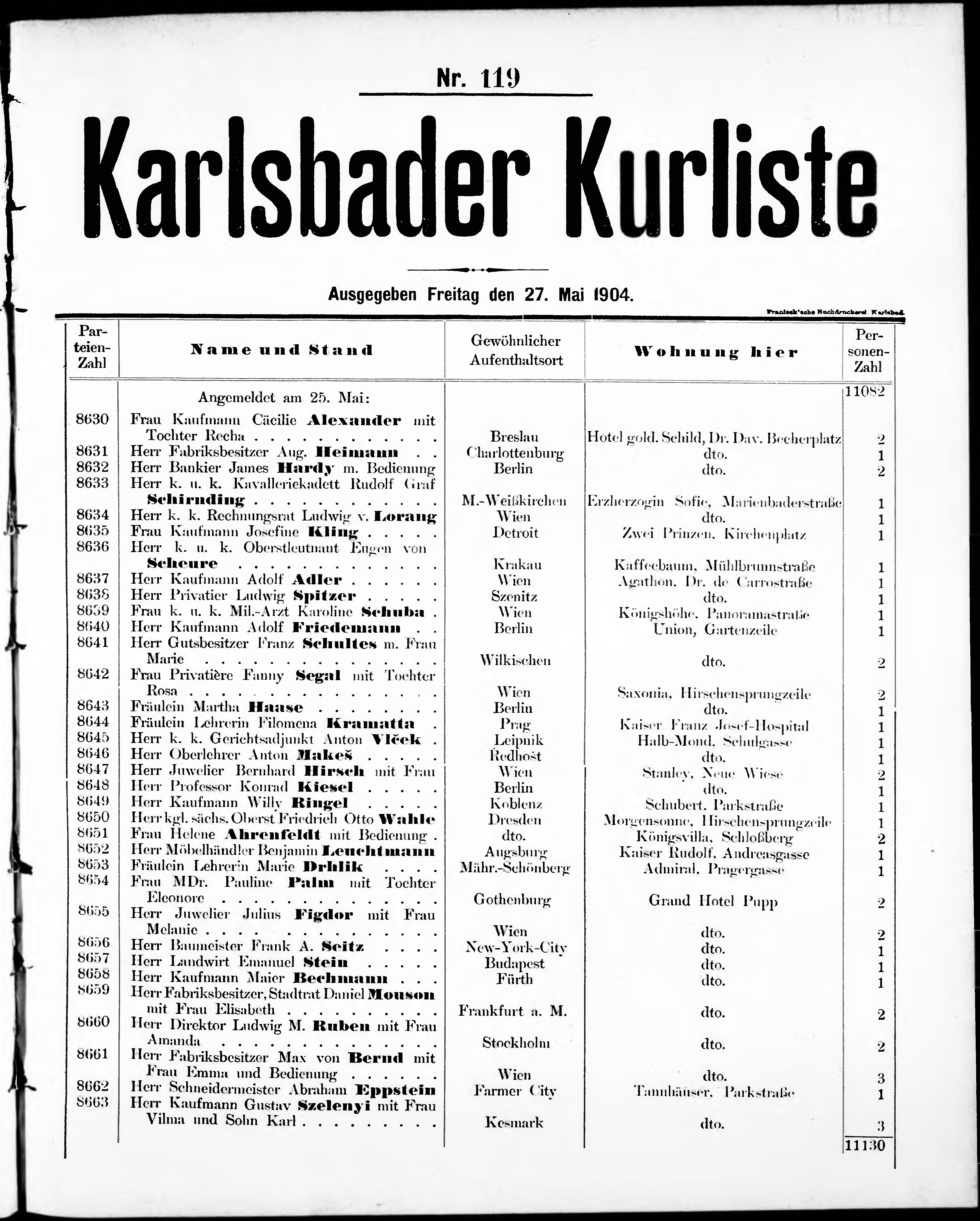 Liste der im Jahre ... angekommenen und abgereisten Kur- und Badegäste in Karlsb...