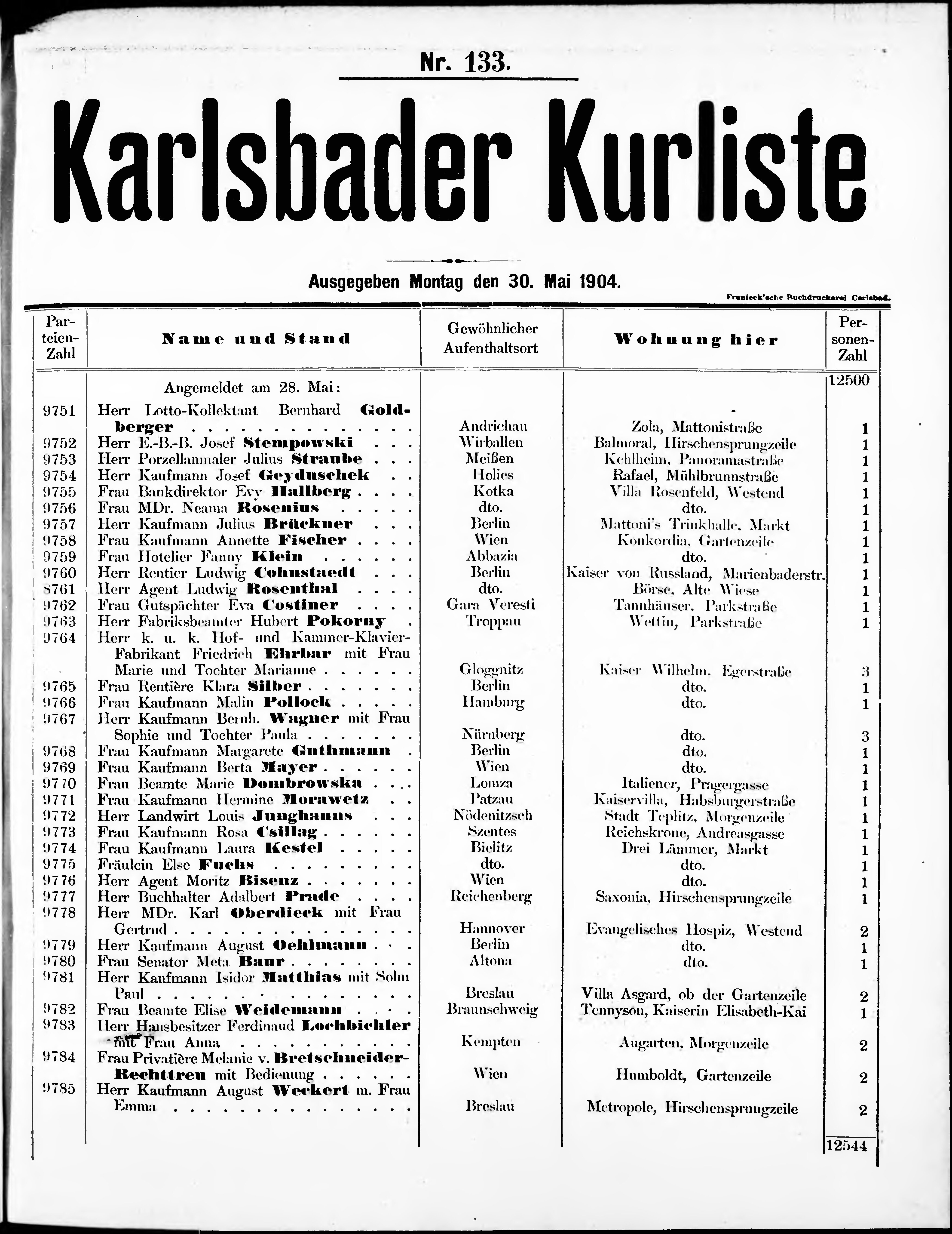 Liste der im Jahre ... angekommenen und abgereisten Kur- und Badegäste in Karlsb...