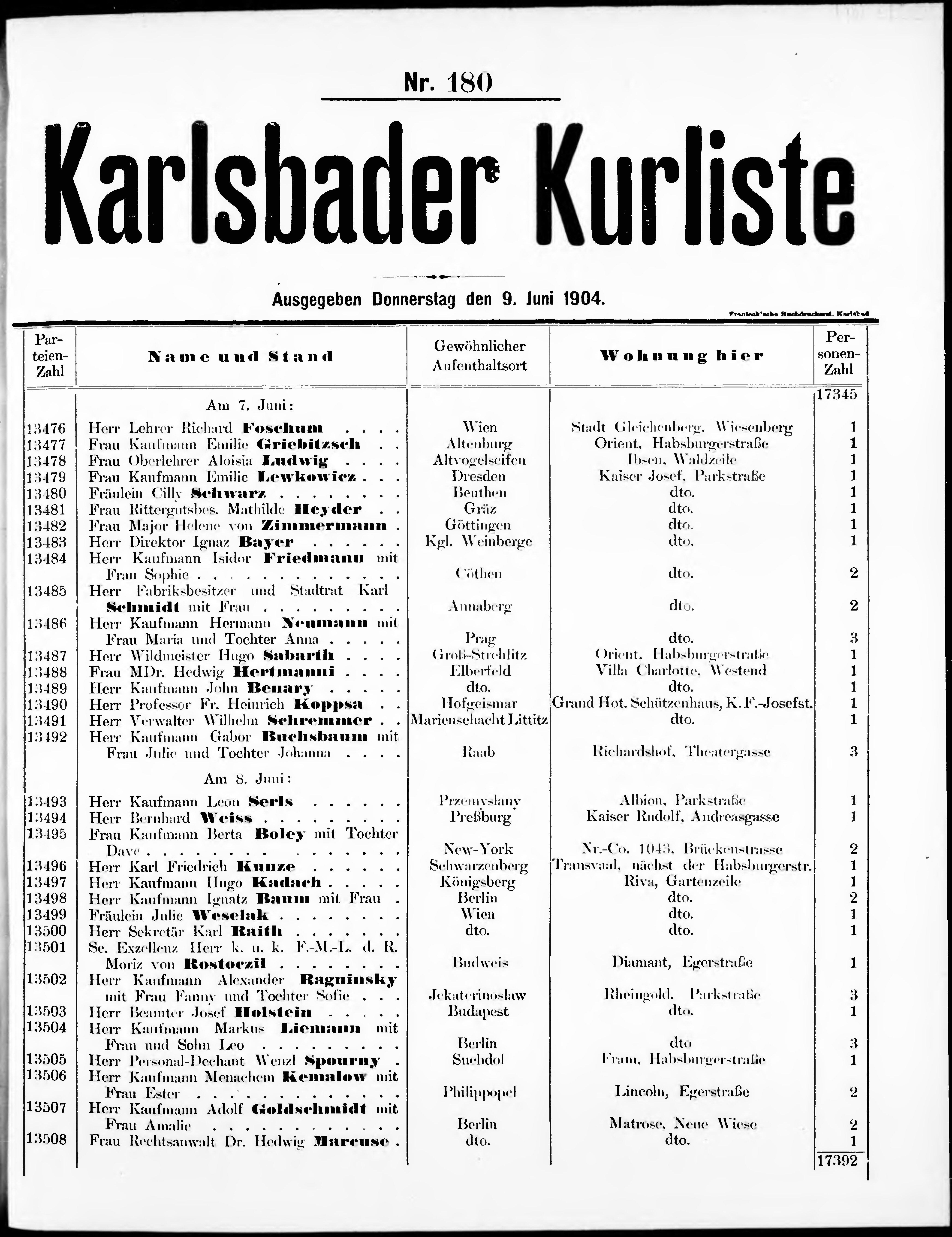 * Datum vydání výtisku: 9.6.1904 Číslo výtisku: 180