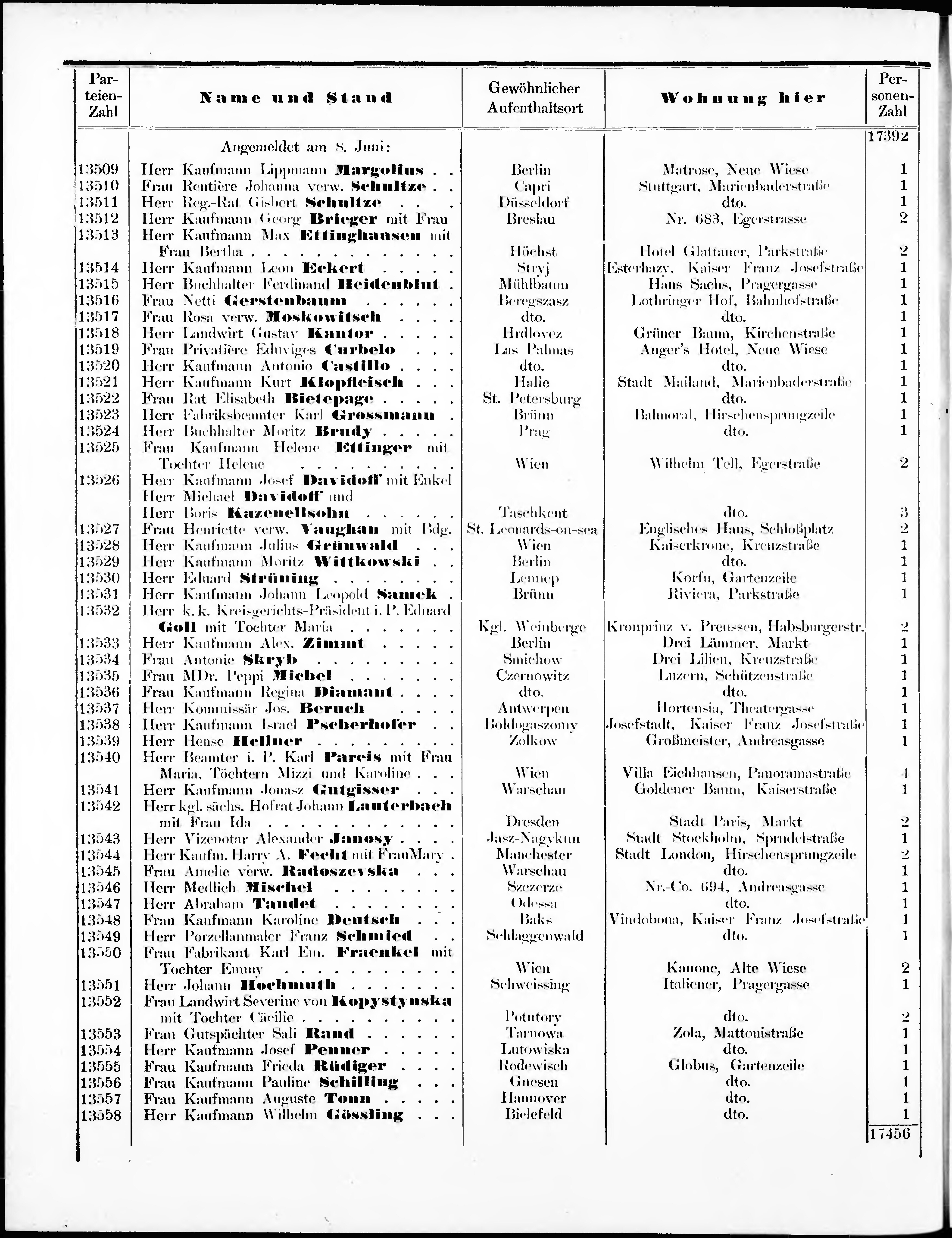 Liste der im Jahre ... angekommenen und abgereisten Kur- und Badegäste in Karlsb...
