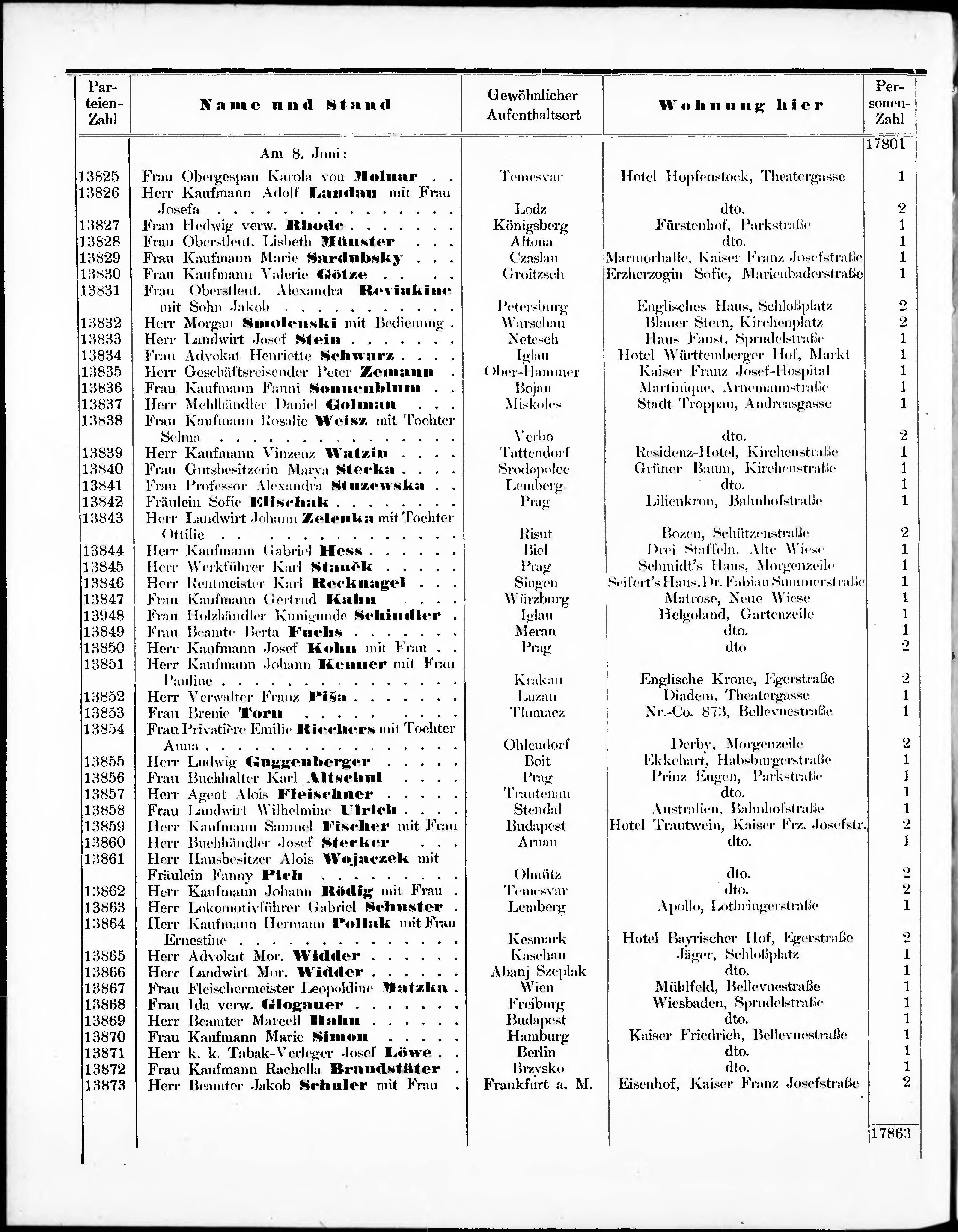 Liste der angekommenen und abgereisten P. T. Curgäste in Carlsbad im Jahre