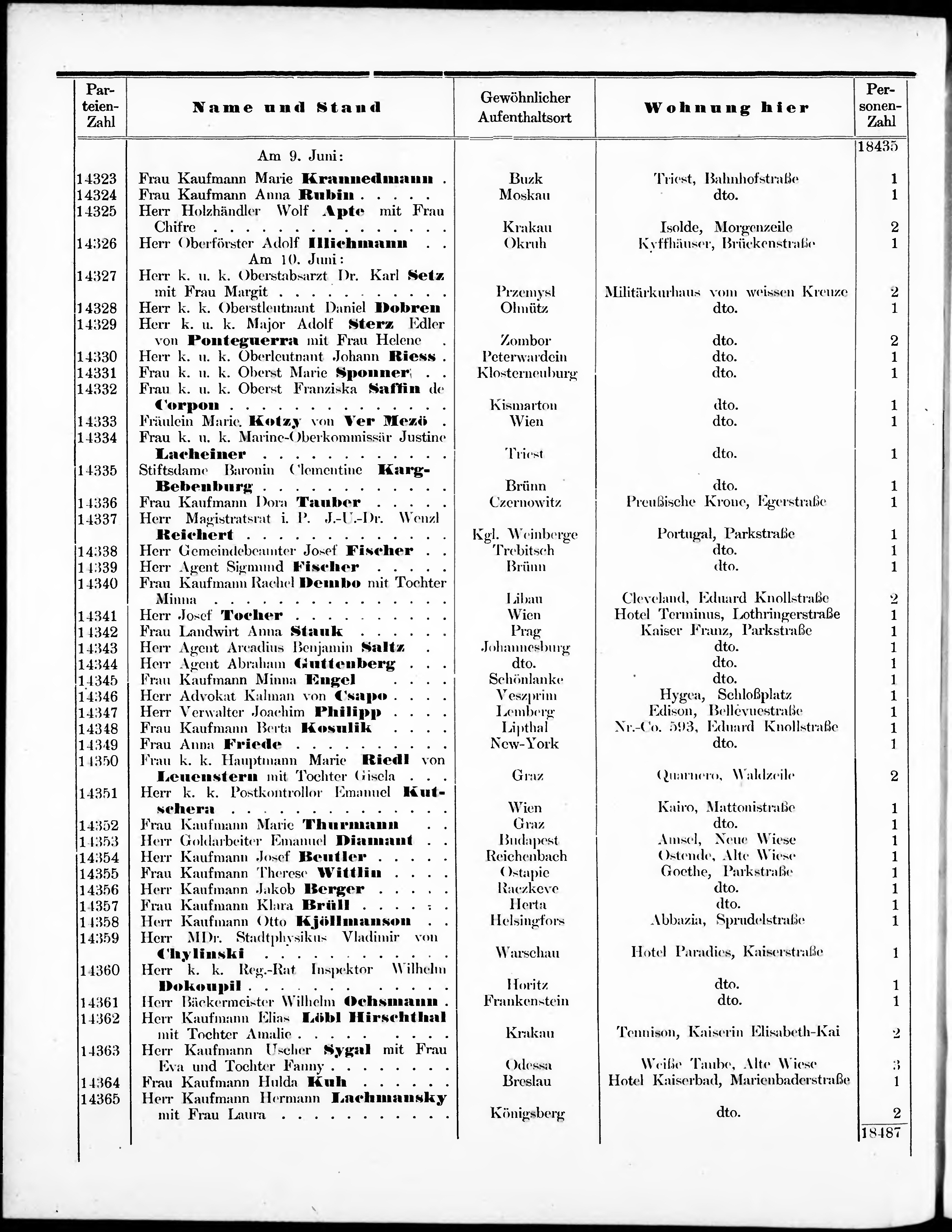 Liste der im Jahre ... angekommenen und abgereisten Kur- und Badegäste in Karlsb...