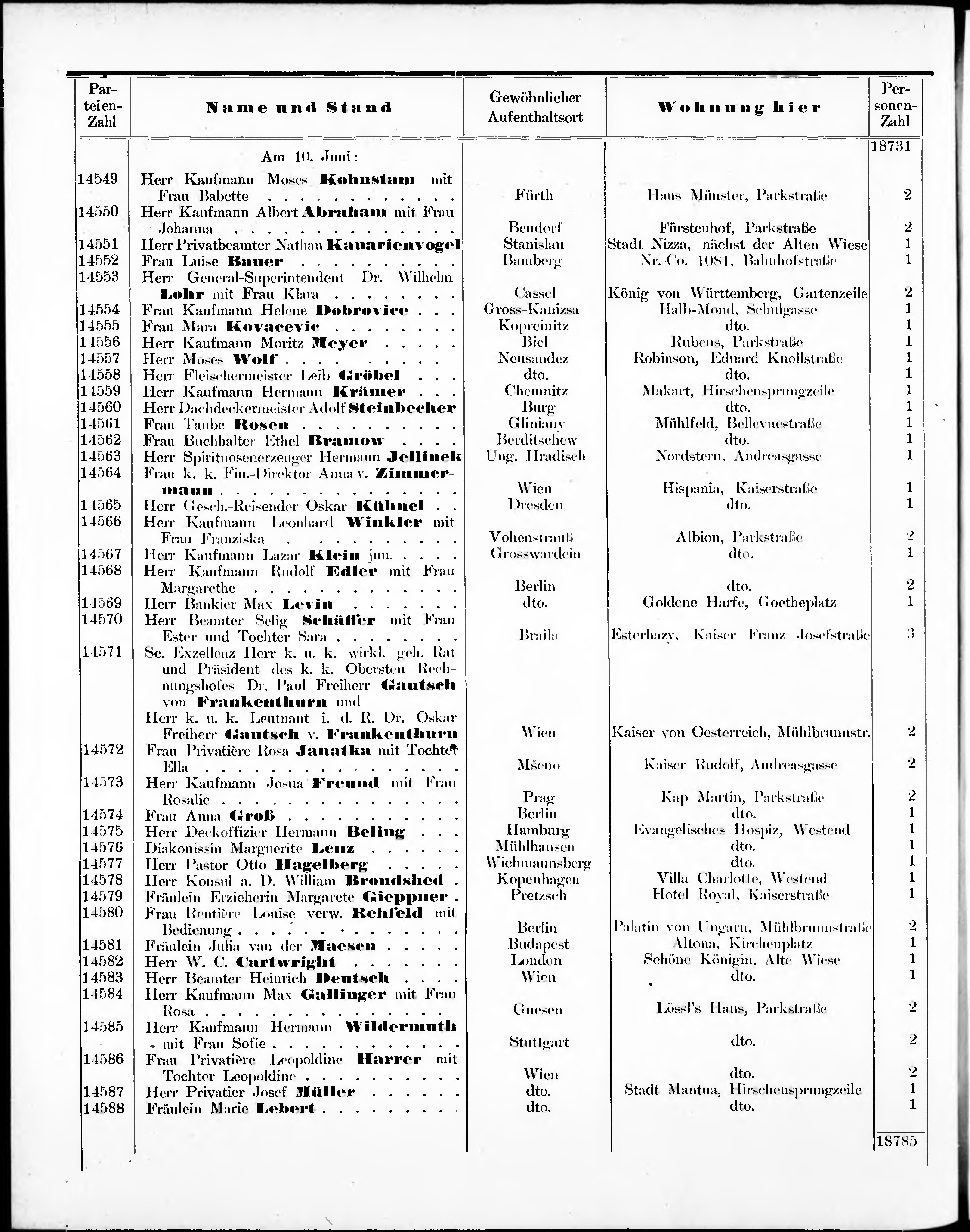 Liste der angekommenen und abgereisten P. T. Curgäste in Carlsbad im Jahre