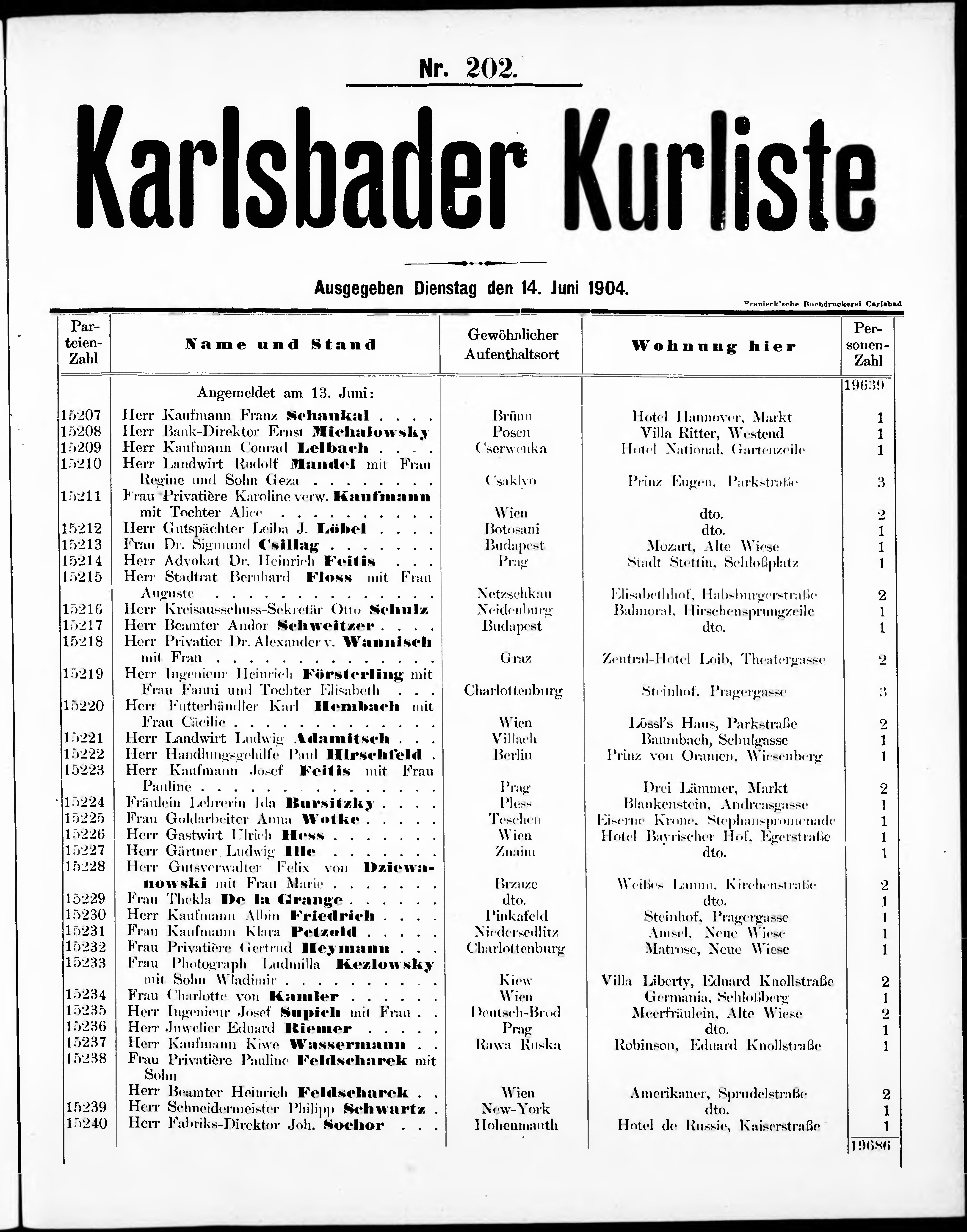 Liste der im Jahre ... angekommenen und abgereisten Kur- und Badegäste in Karlsb...